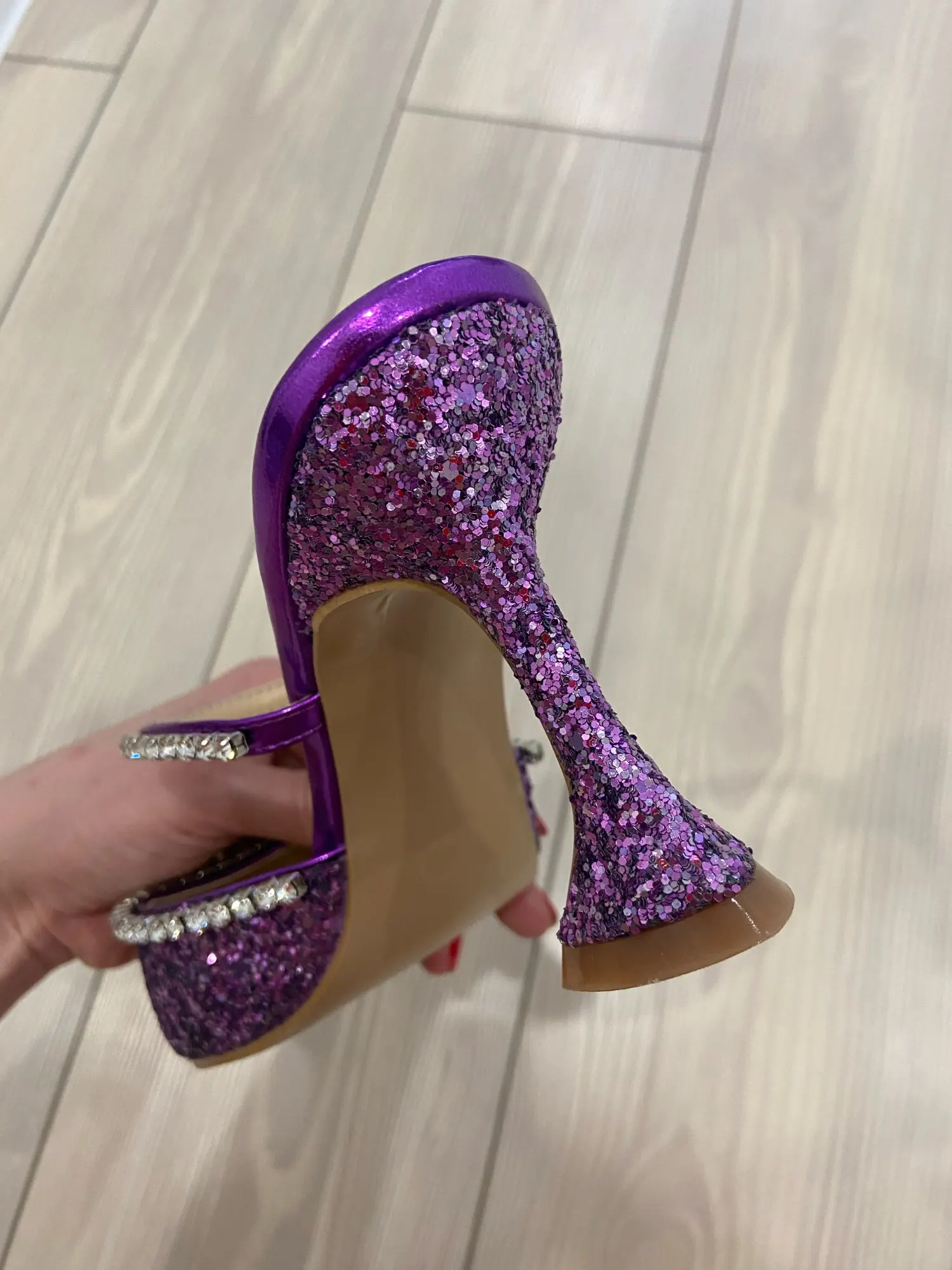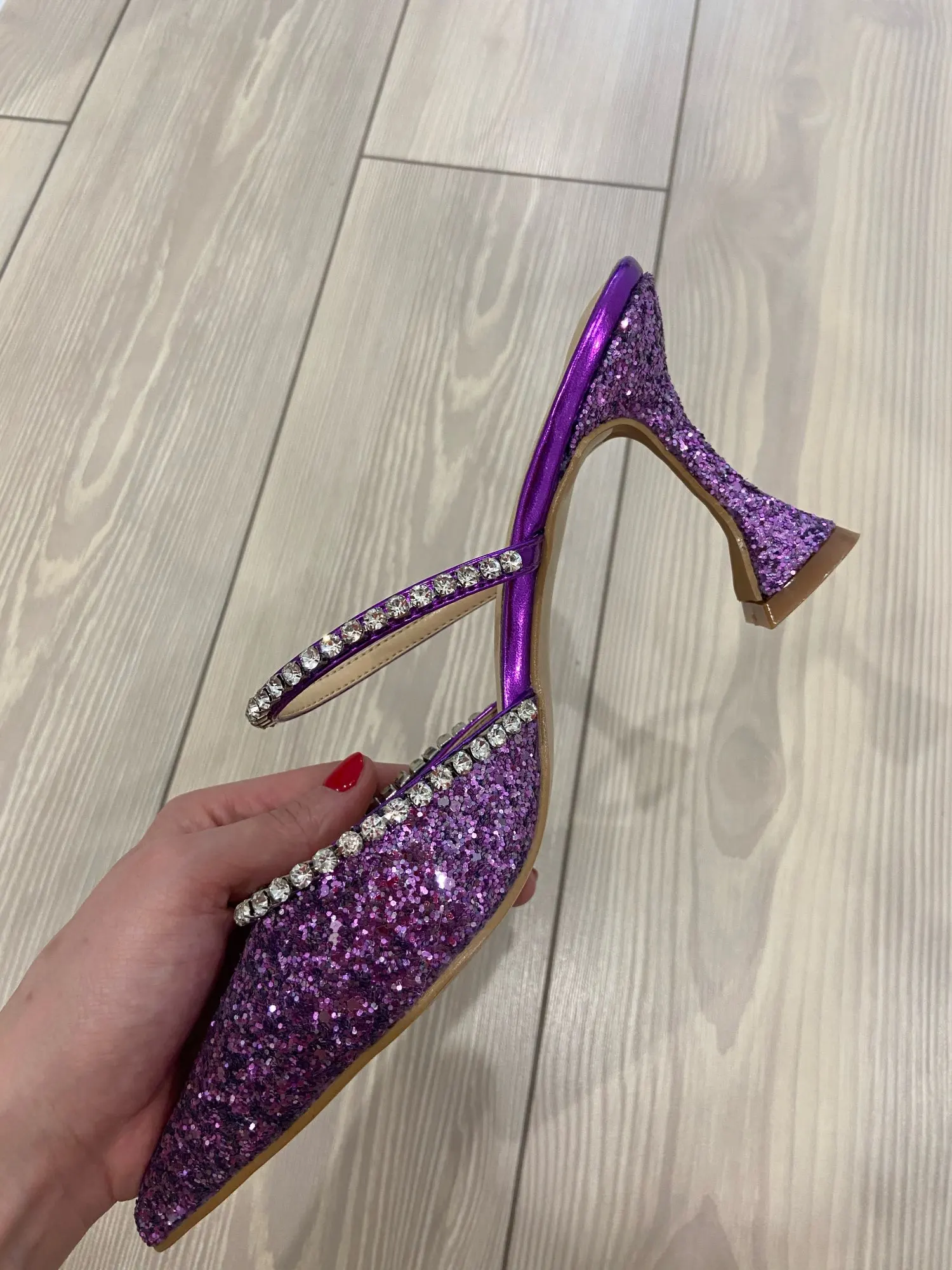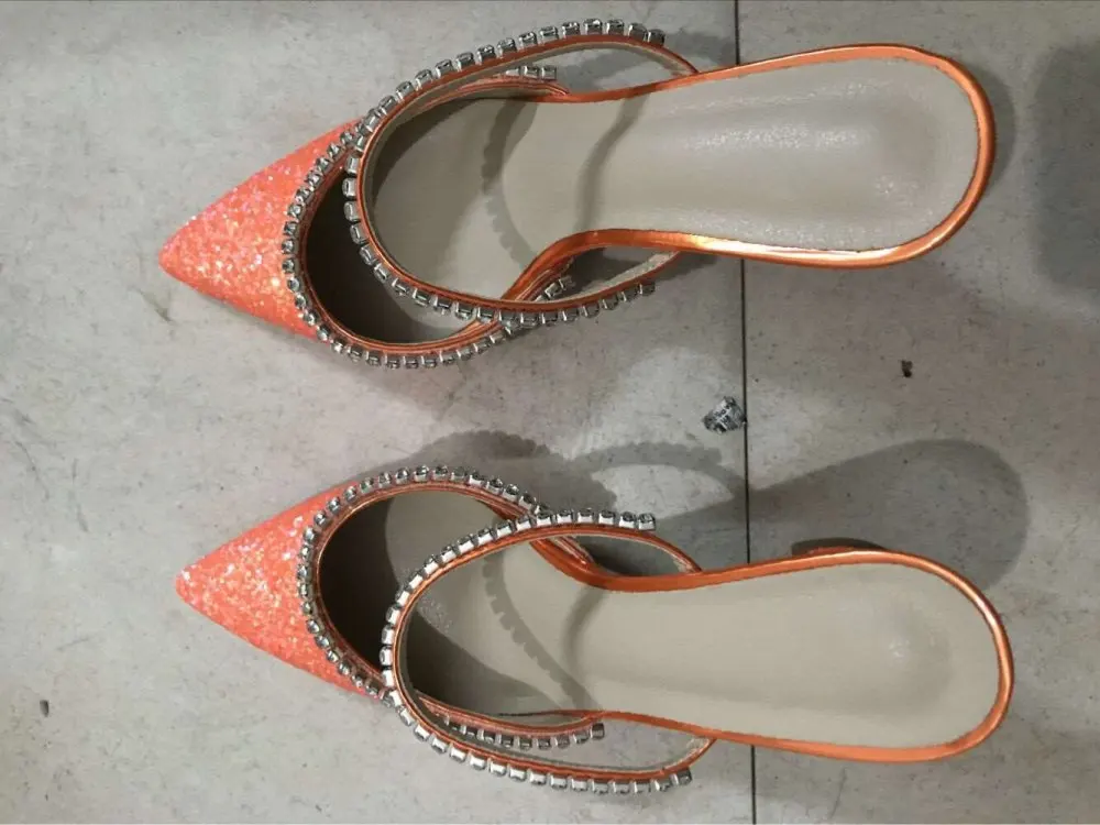 Женские шлепанцы с блестками, на высоком каблуке, с острым носком, в европейском и американском стиле, лето 2020