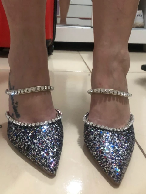 Не качество, которое я ожидал. Каблуки тонкие, не такие громоздкие, как на картинке. Камни уже поднимаются, поэтому они легко оторвутся. На 41/42 я заказал 43, и он идеально подходит. Но изящный и приятный все то же самое.