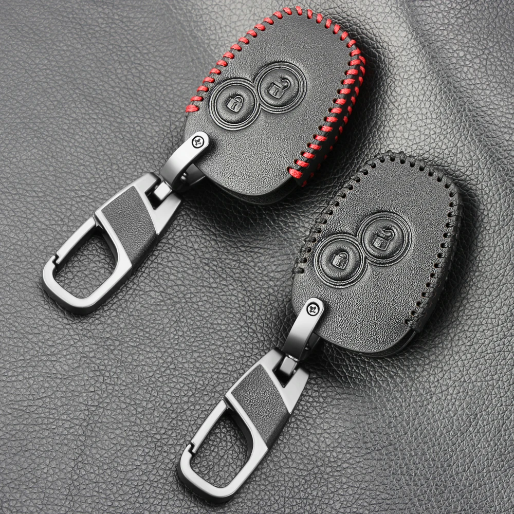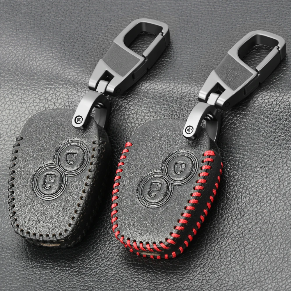 Чехол из натуральной кожи с 2 кнопками для дистанционного ключа для Renault Megane Modus Espace Laguna Duster Logan DACIA Sandero Fluence Clio Kangoo