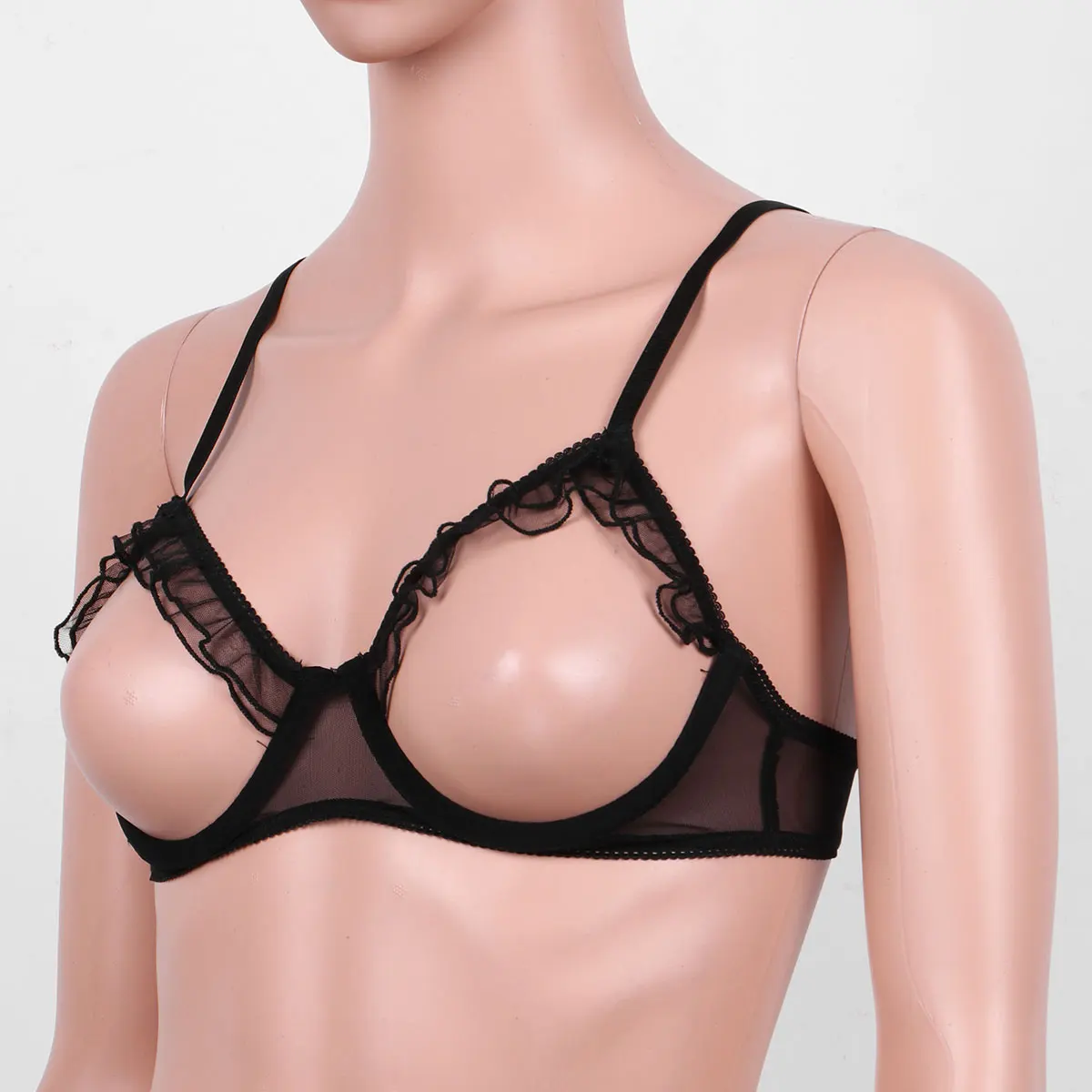 Женский Эротический бюстгальтер, дышащее Прозрачное нижнее белье в сетку, бюстгальтер, топ, Женский Регулируемый бюстгальтер на бретельках, голая грудь, оборки, пуш-ап, бюстгальтер на косточках, Топ