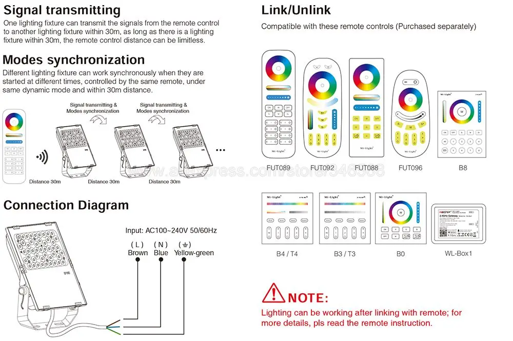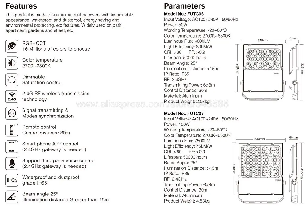 MiBoxer FUTC06 50W RGB+CCT LED Garden Light AC85-265V Waterproof Outdoor Lamp 2.4G Remote WiFi APP Alexa Voice Control