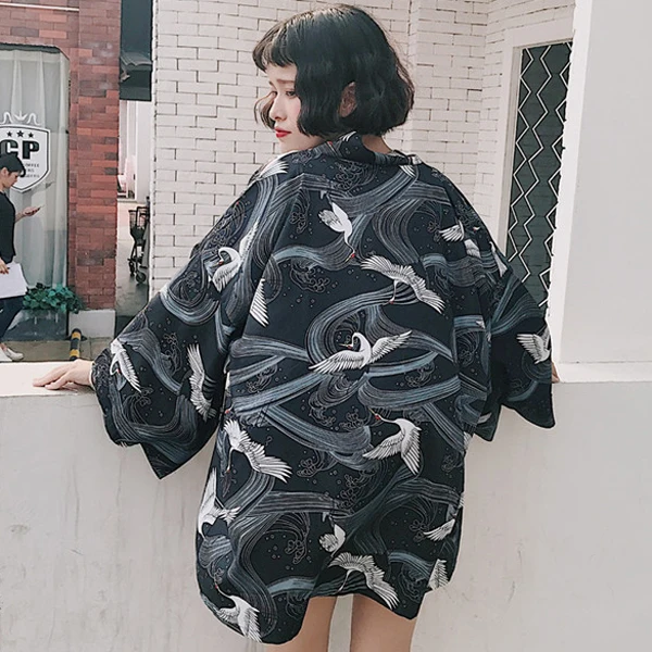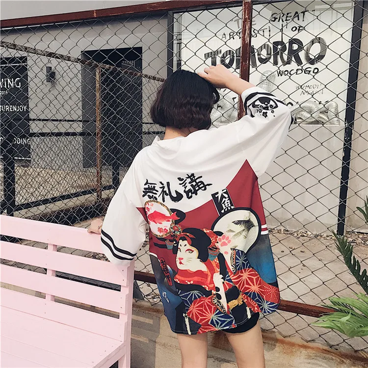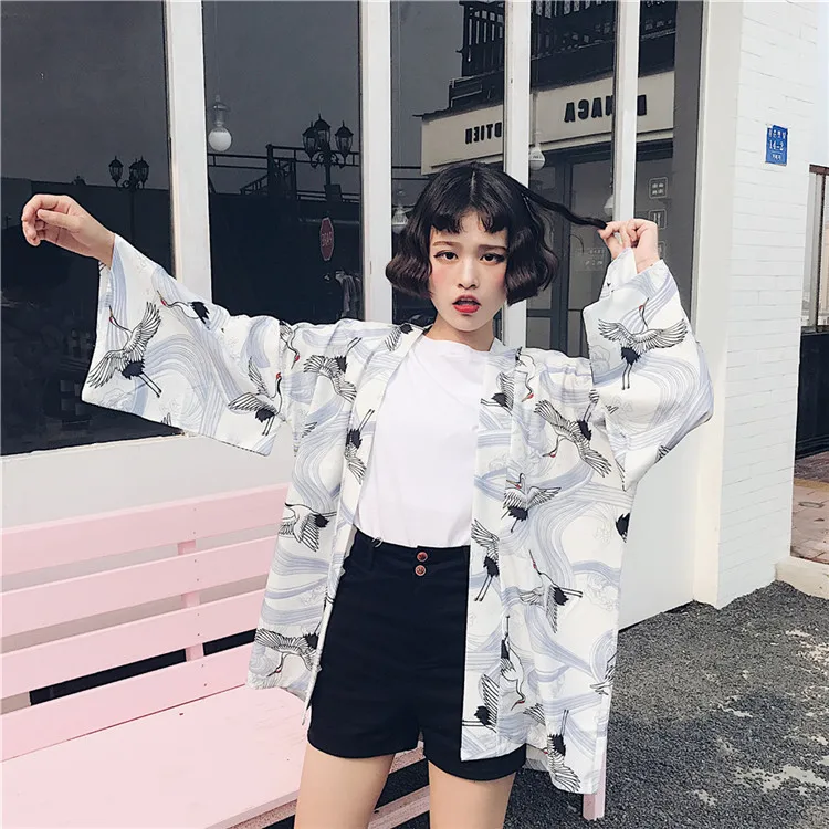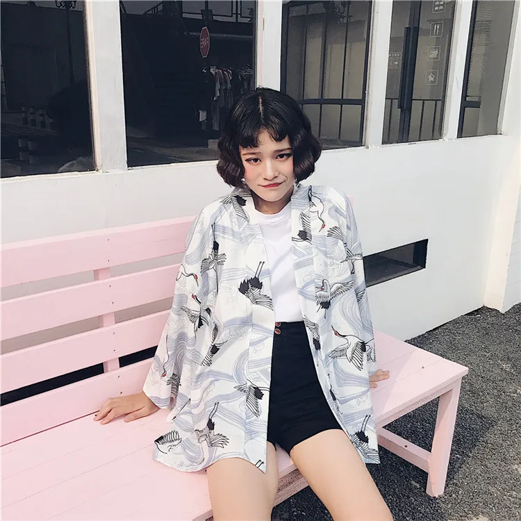 Кимоно HStar в японском стиле с рукавами летучая мышь, винтажная блузка в стиле Харадзюку, рубашки с драконом