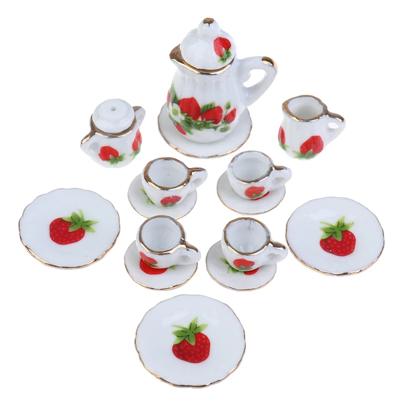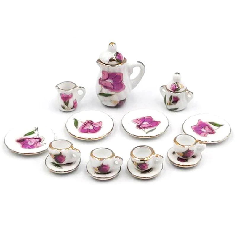 15 шт.компл. 1:12 миниатюрная керамическая посуда для кукольного домика фарфоровая керамическая чайная чашка тарелка имитация кухонные игрушки