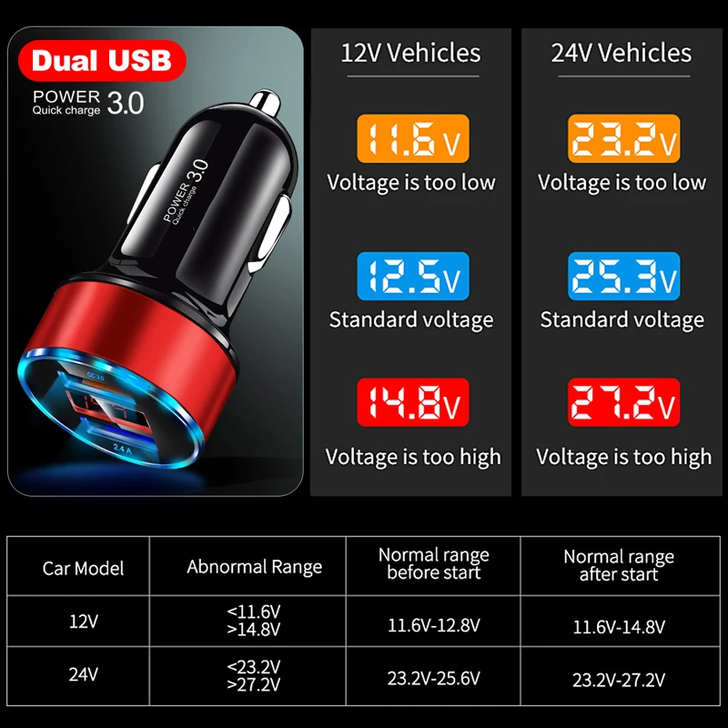 Автомобильное зарядное устройство с двумя USB-портами, 3,1 А, 12-24...