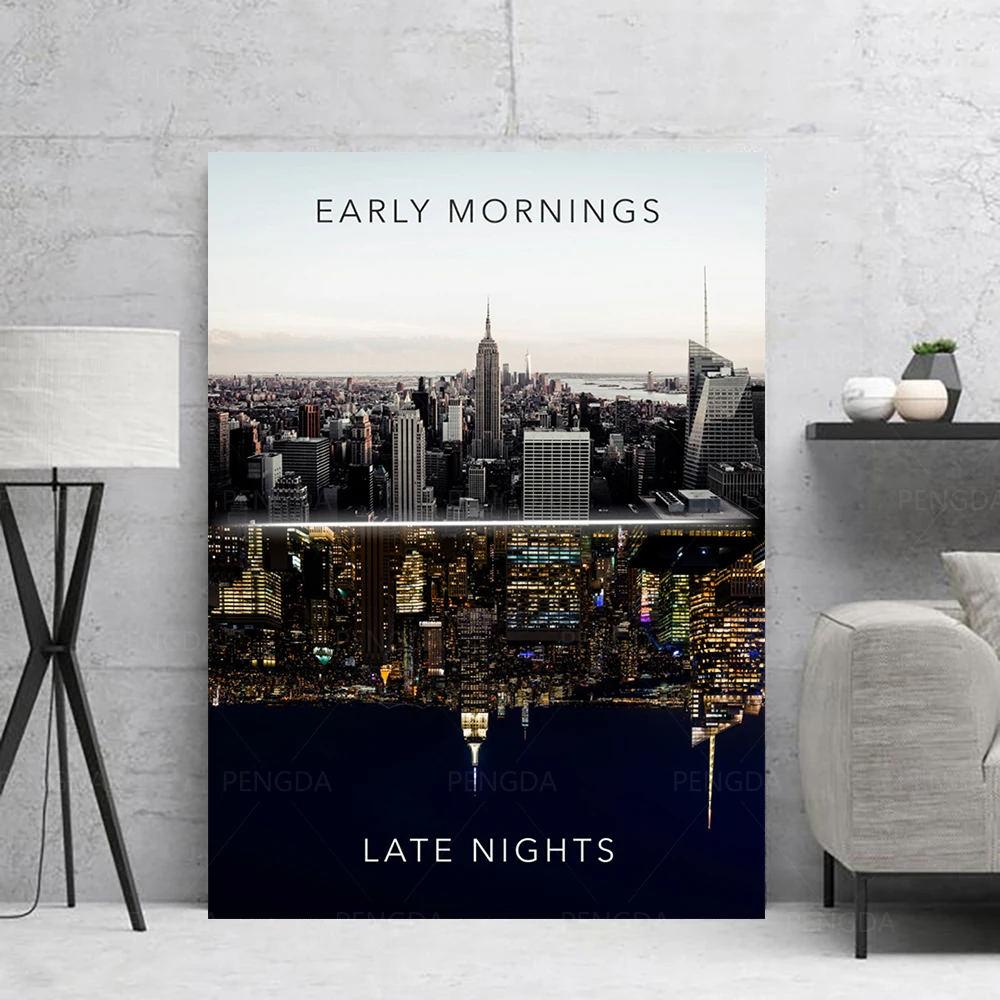 Настенная картина с изображением городского утреннего ночного пейзажа Печать на холсте Современная плакат для дома декоративный, Модульная картина без рамки для гостиной
