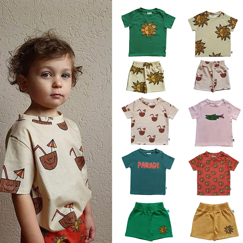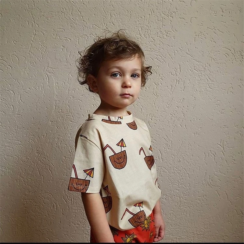 Летняя футболка с короткими рукавами для детей модные брендовые Детские футболки с рисунком солнца для мальчиков и девочек стильные летние топы для малышей