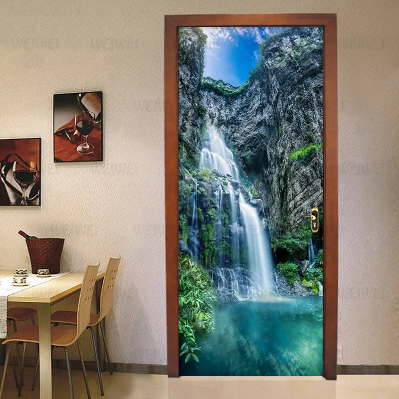 3D наклейка на дверь, домашний декор, гостиная, столовая, ПВХ, самоклеящиеся водонепроницаемые настенные наклейки, виниловые обои