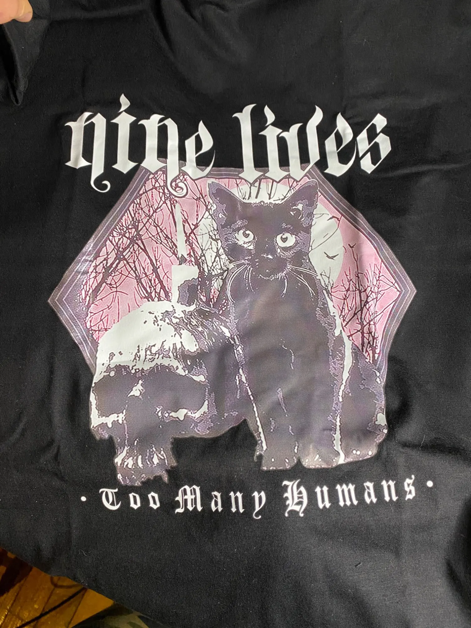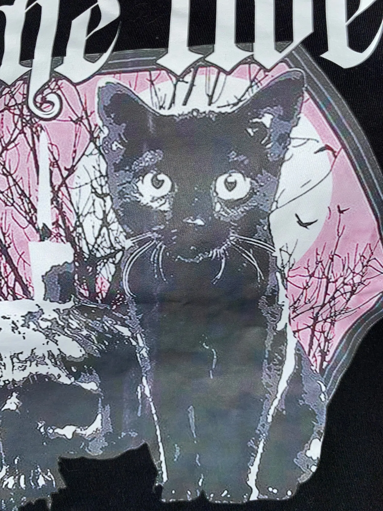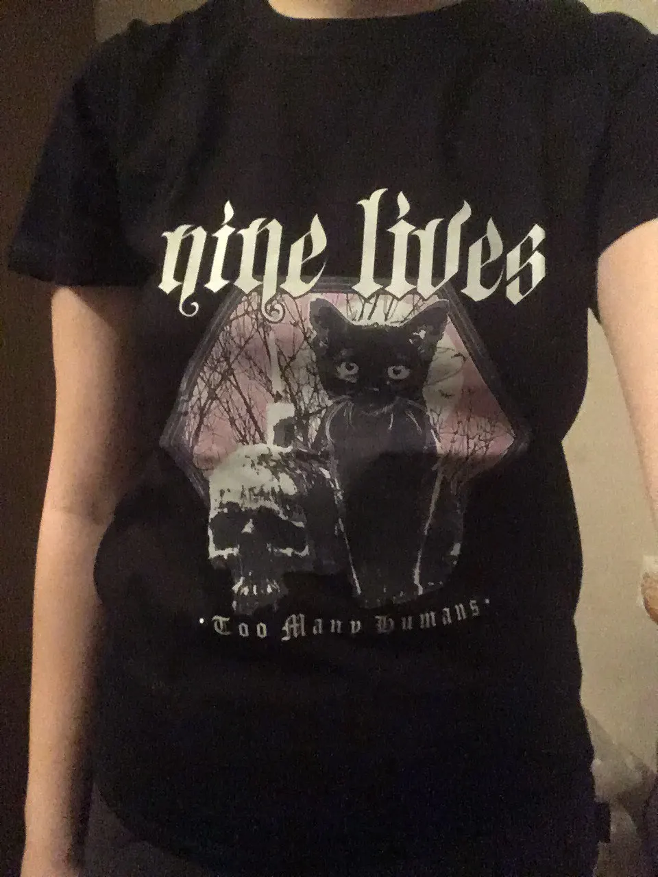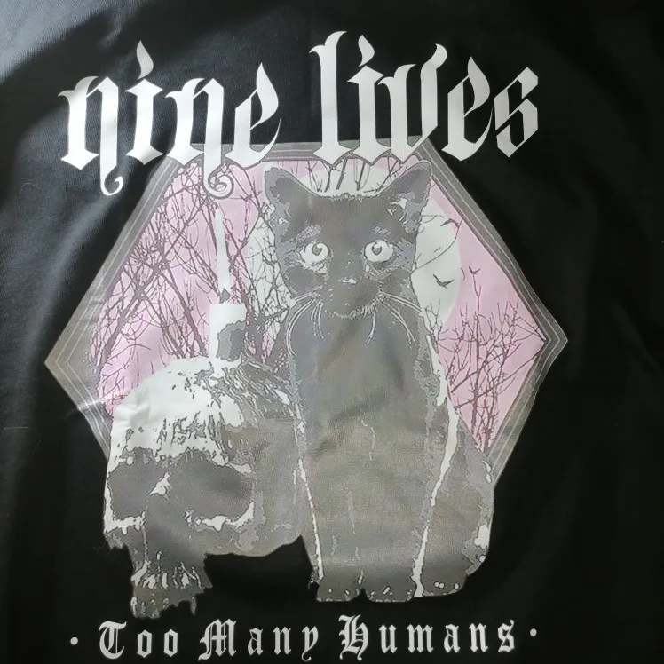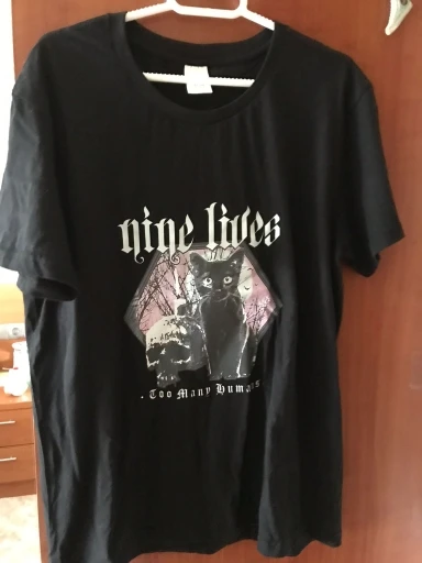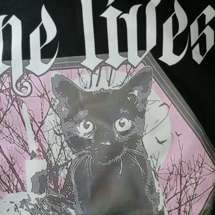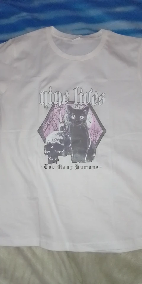 Приехала футболка быстро. Принт с кошкой не такой яркий как на фото, но ничего страшного
