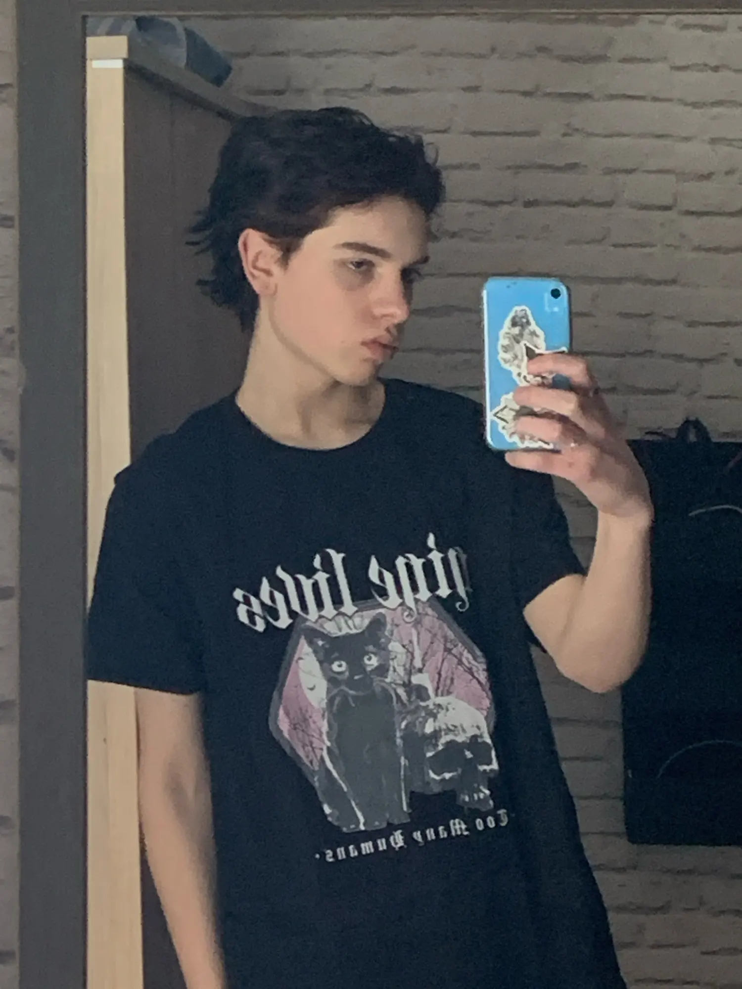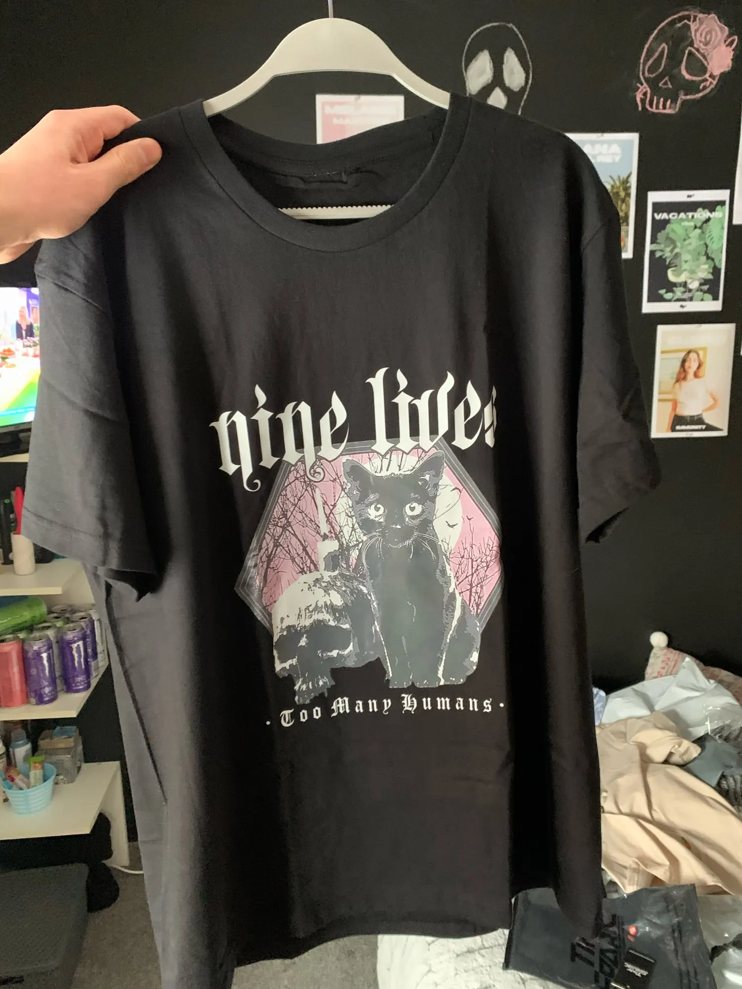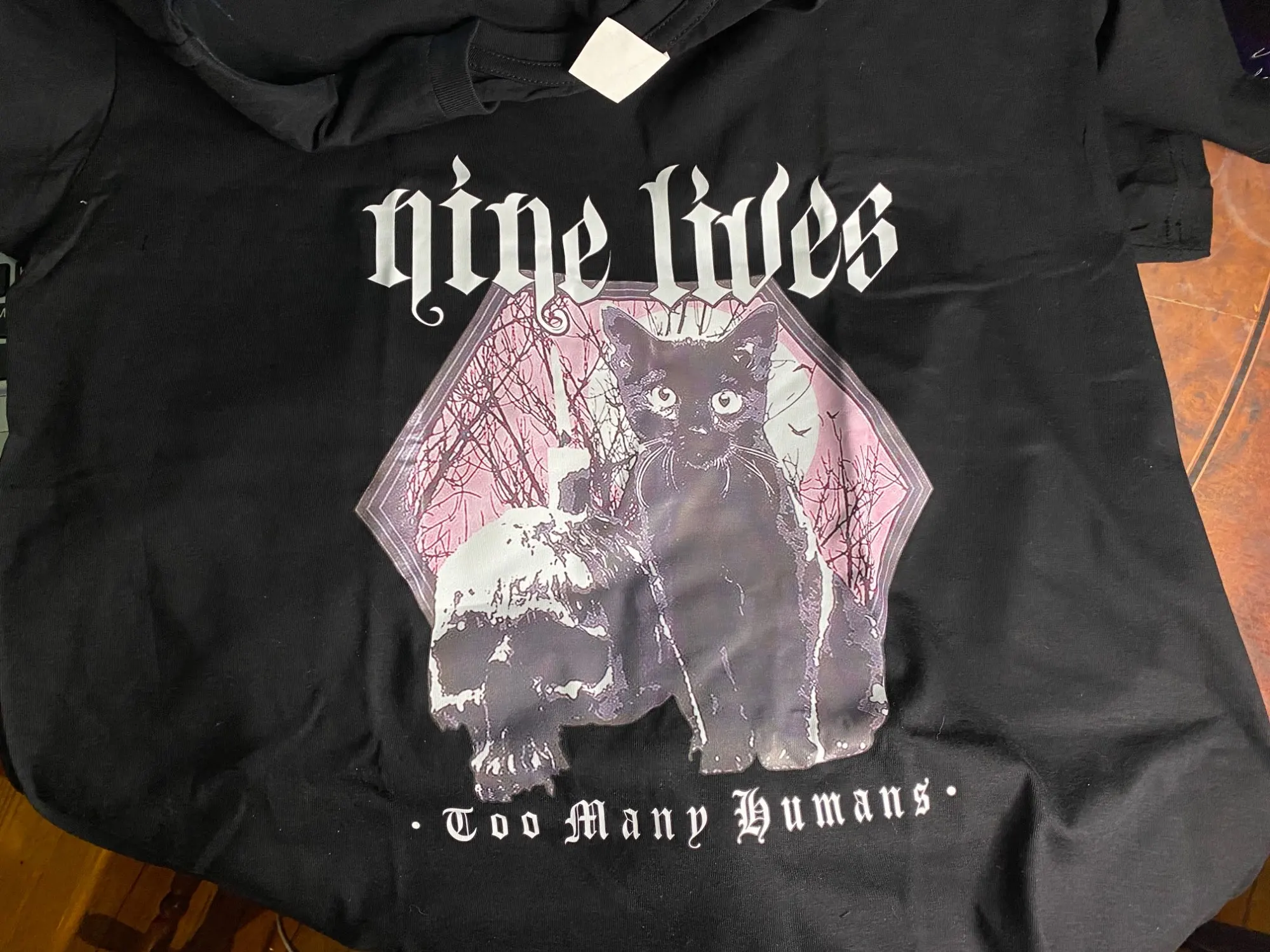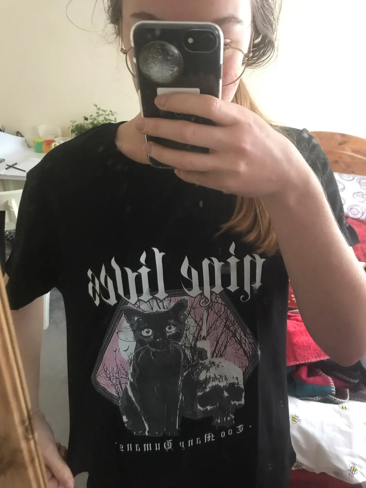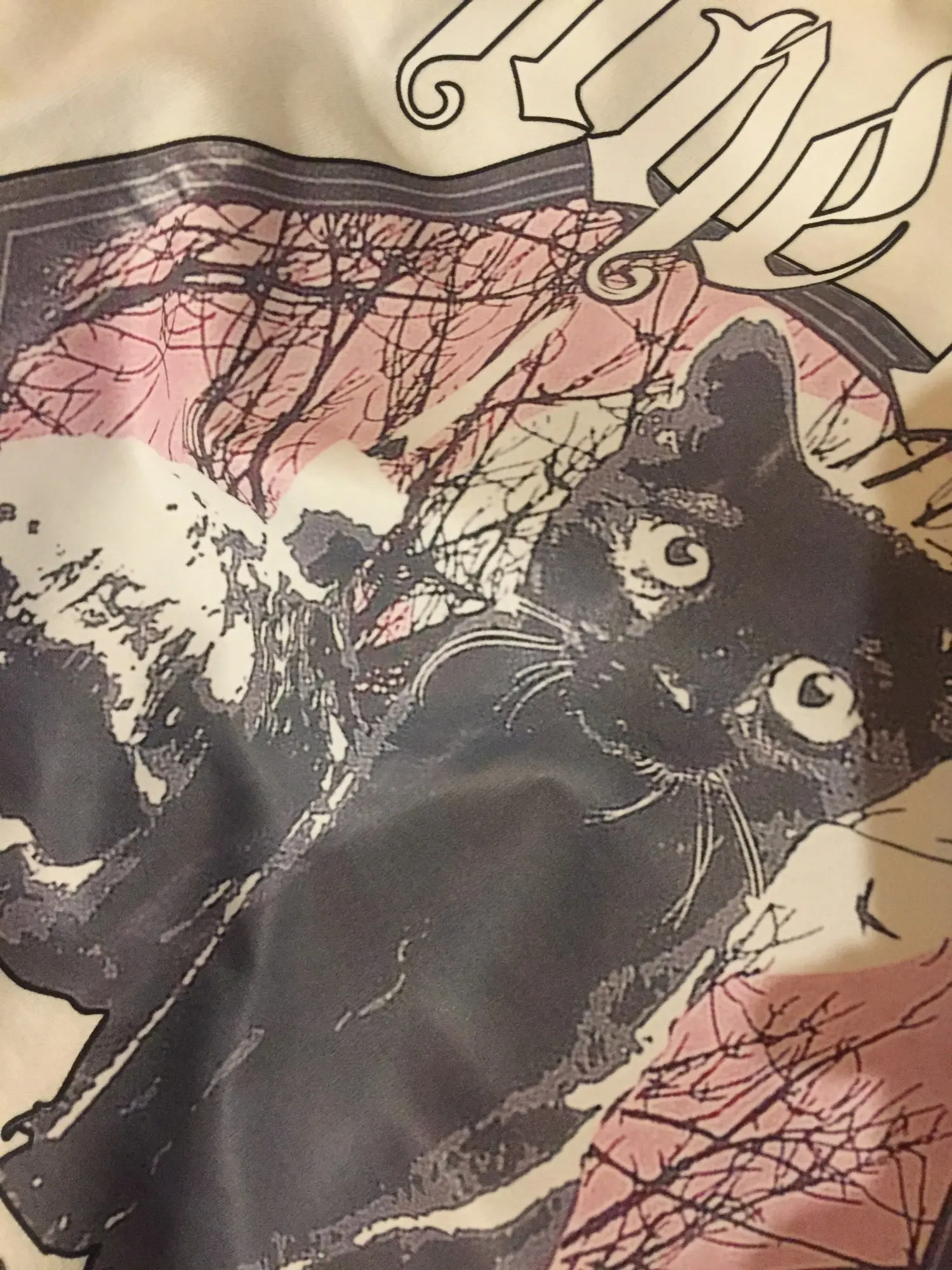Приехала футболка быстро. Принт с кошкой не такой яркий как на фото, но ничего страшного
