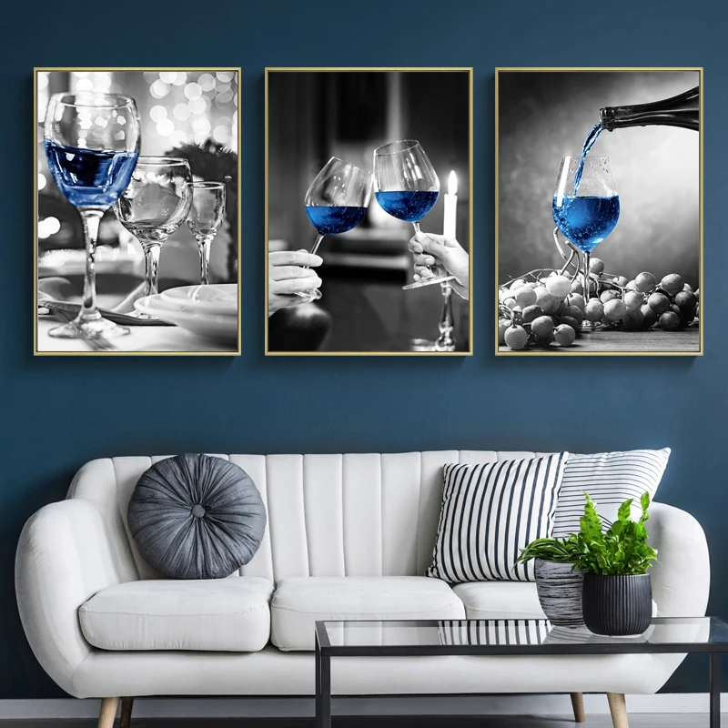 Синий винный бокал арт-принт на холсте, плакат Современная Настенная картина для бара, ресторана, столовый Декор для гостиной