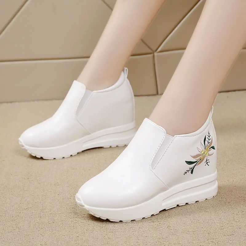 Женские лоферы на танкетке, весенние белые Лоферы без шнуровки, с вышивкой, размера плюс, 2020
