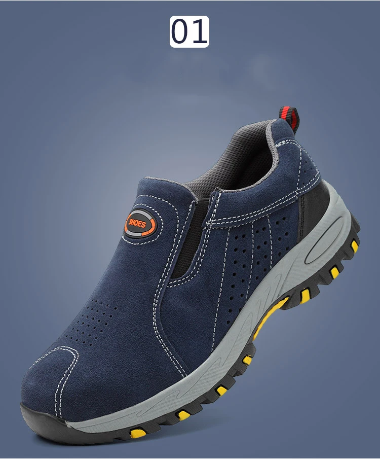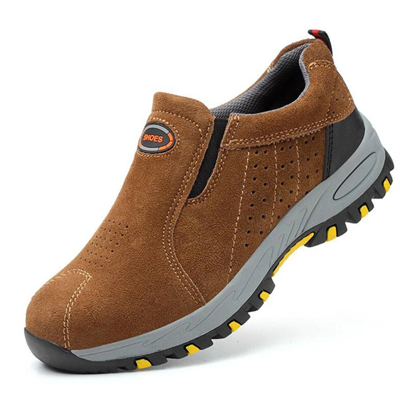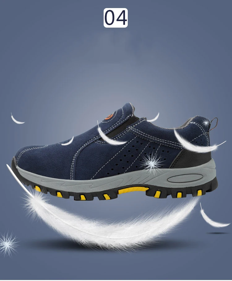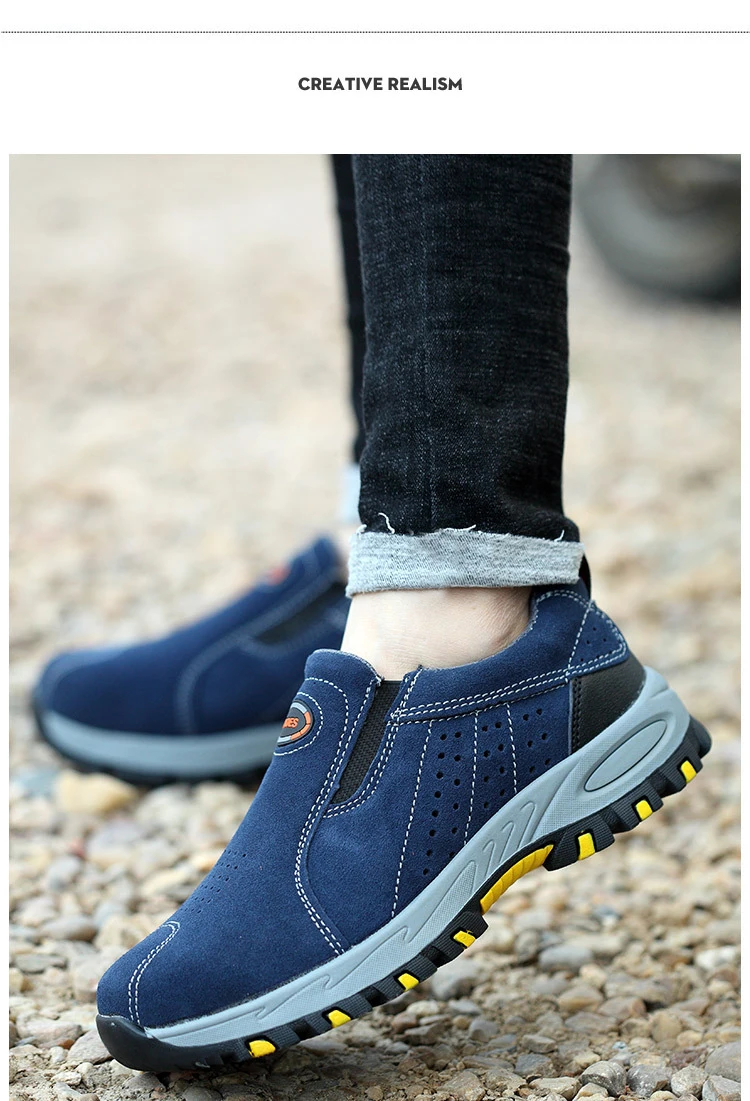 Туфли мужские защитные, дышащие, без застежки, стальной носок, рабочая обувь, повседневные, защита от проколов, модные летние