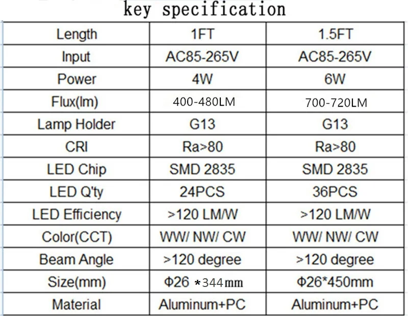 Характеристики светодиодной трубки T8: Входное напряжение: AC85-265VДлина: 344 мм 4 Вт; 450 мм 6 ВтДиаметр: 30 мм Люмен: 4 Вт 400 лм; 6 Вт 600 лмЦветовая температура:3000-3500K (теплый белый)4000-4500K (нейтральный белый)6000-6500K (холодный белый)CRI: >80RaКоэффициент мощности: 0,9Срок службы: 30000-50000 чФункция: Тип B (балластный обходной)Пожалуйста, удалите балласт перед установкой!Посылка:(1 трубка + аксессуары для монтажа)