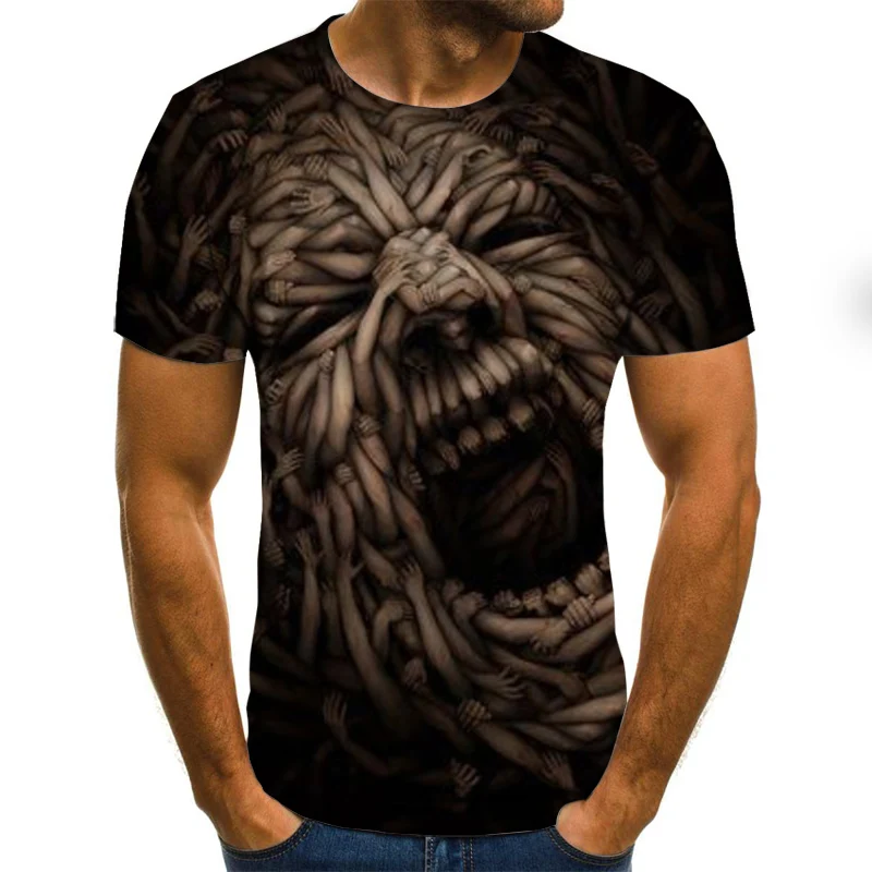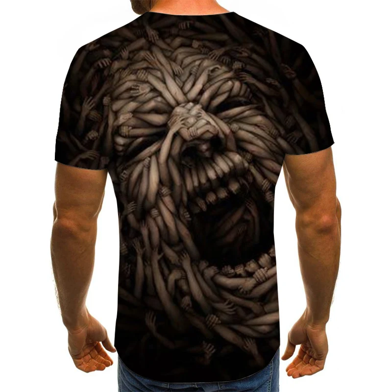 Новинка 2020, Мужская футболка с черепом и ужасами, Летние повседневные топы, модная рубашка с коротким рукавом и 3D-принтом, новая рубашка с круглым вырезом, модная уличная одежда