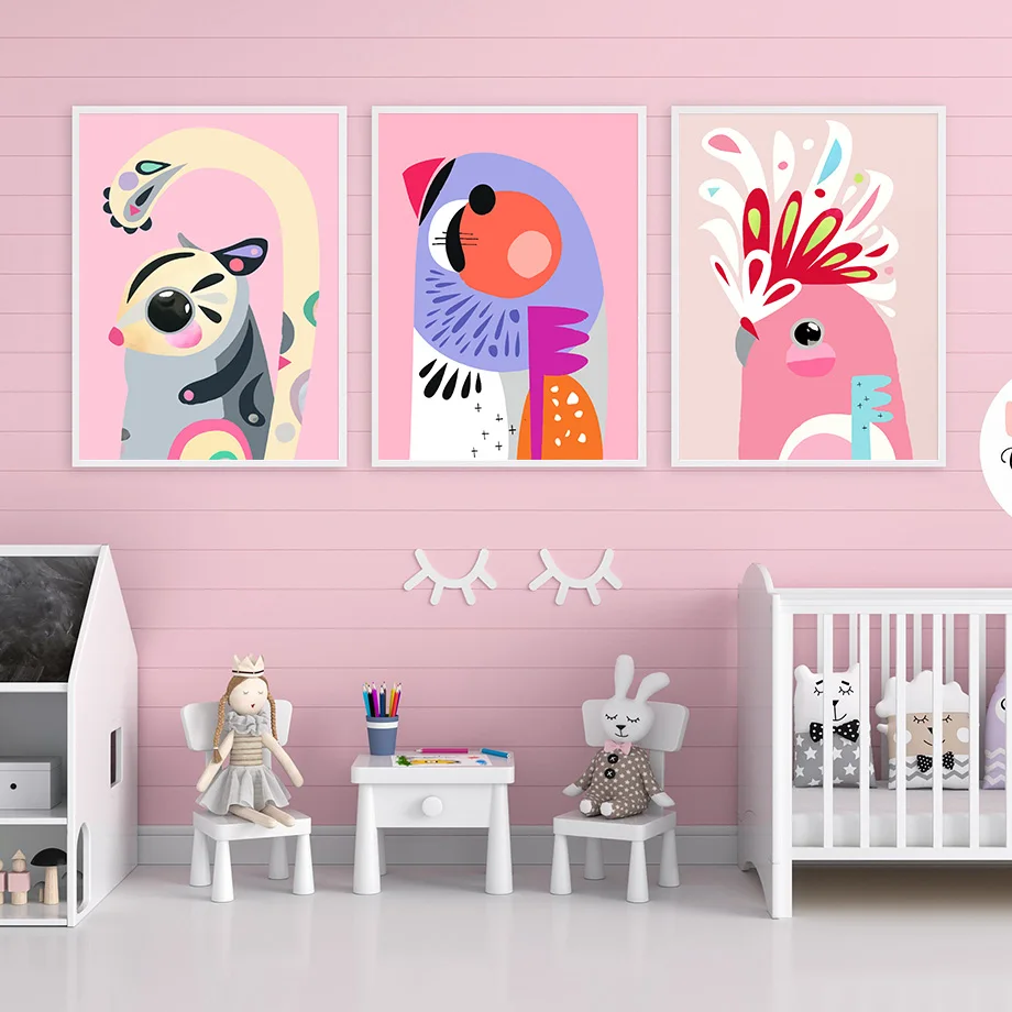 Красочная мультяшная фотография, яркий кенгуру, птица, лебедь, стен...