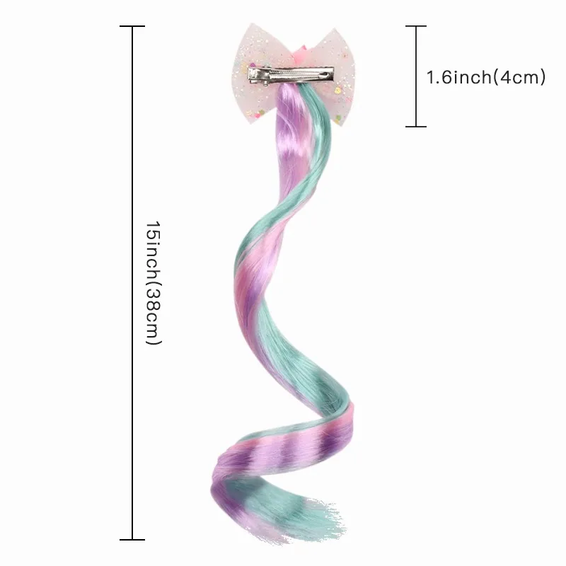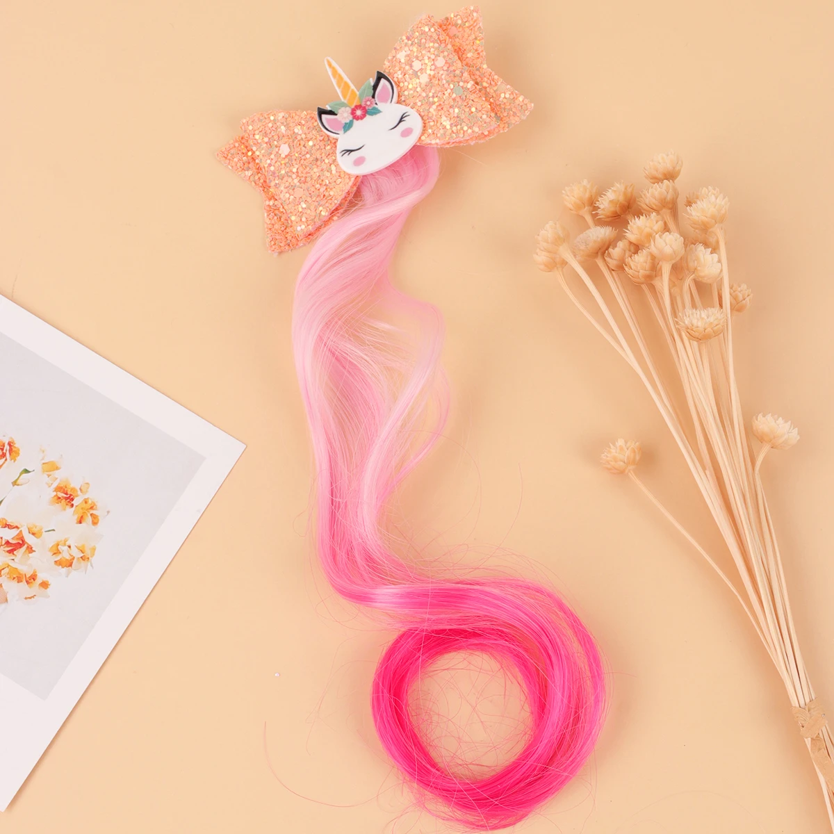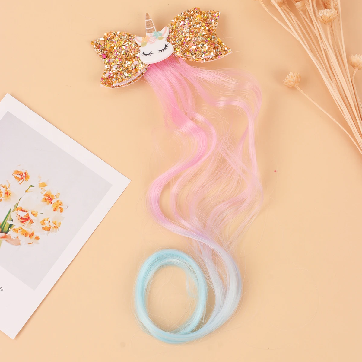Детские Мультяшные парик цвета радуги заколки для волос в виде един...