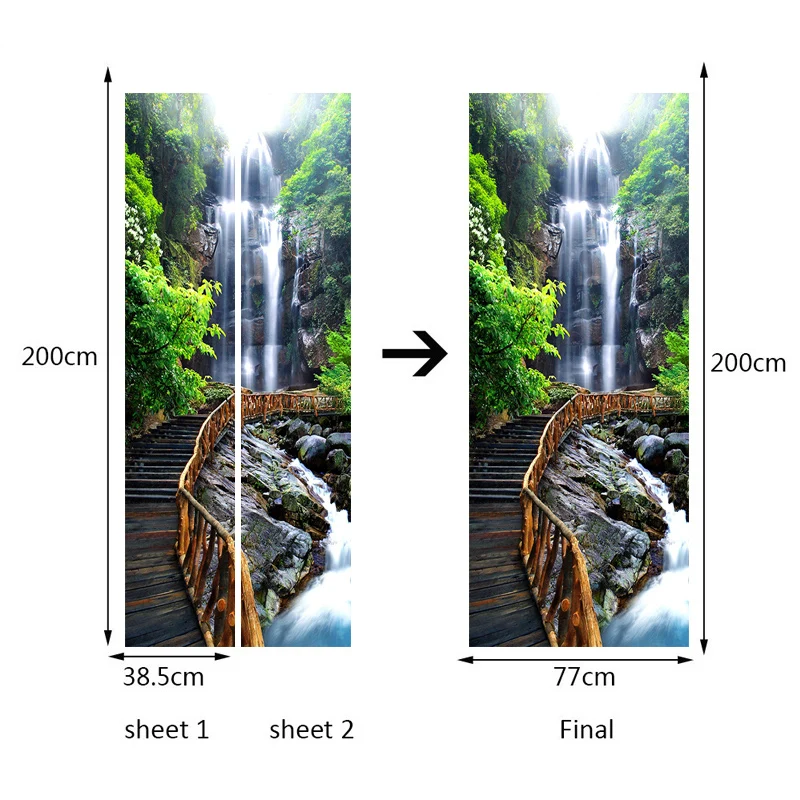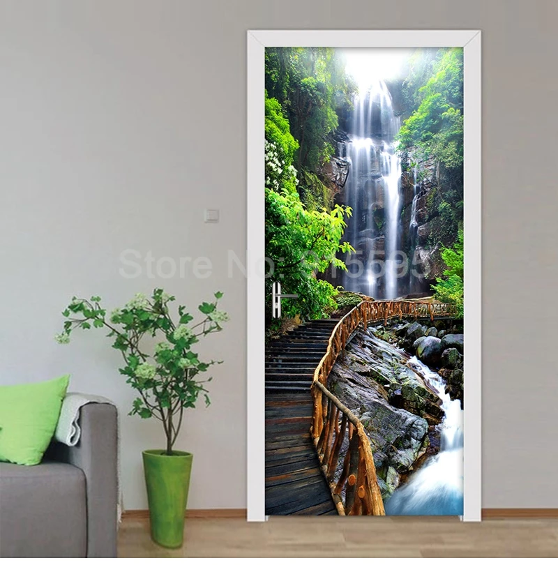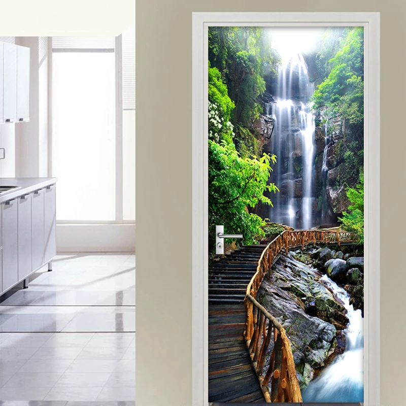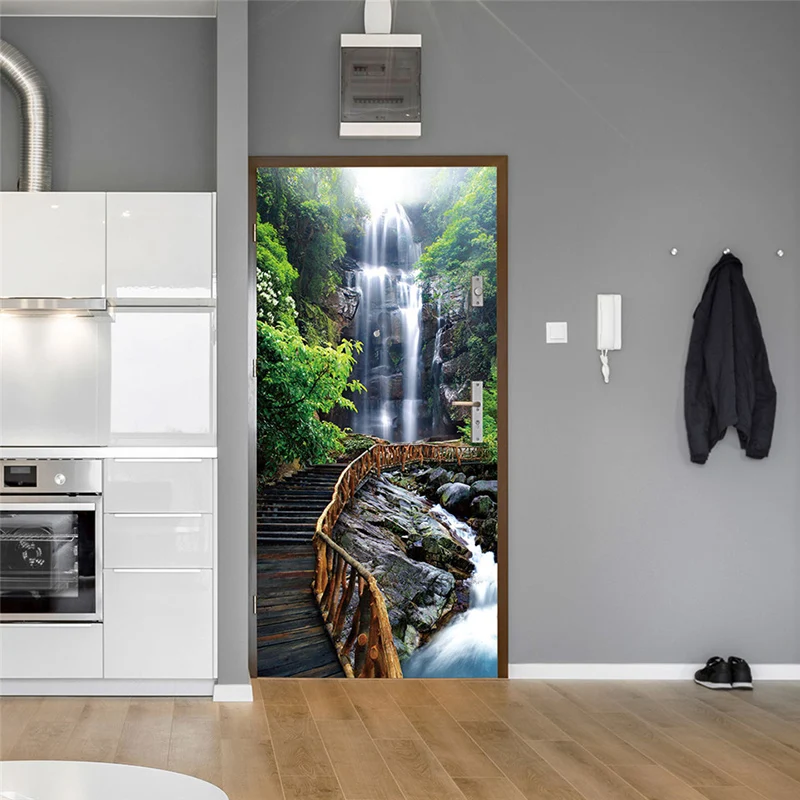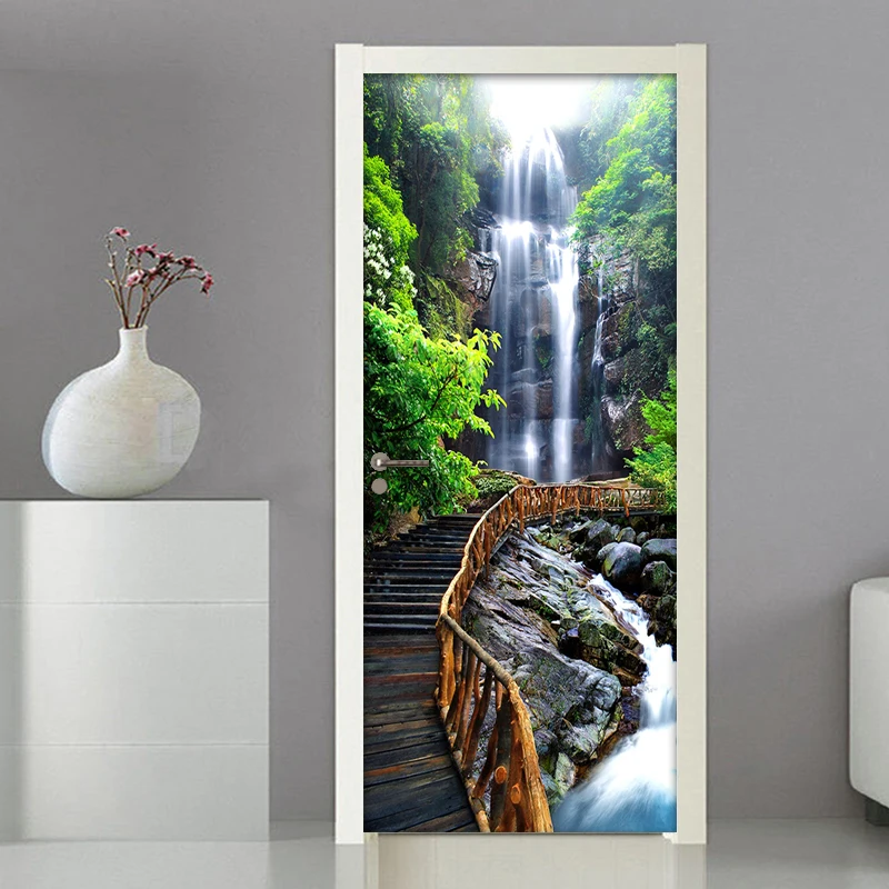 Водостойкие самоклеящиеся 3D-обои из ПВХ с водопадом для дверей гостиной, спальни
