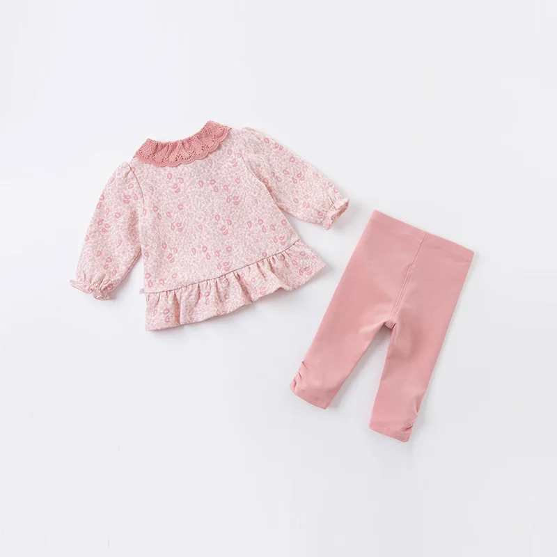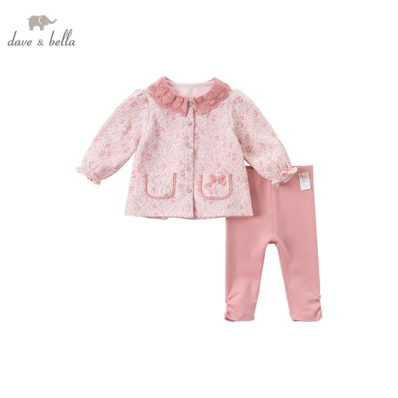 DB14835 dave bellaосенние модные комплекты одежды с цветочным принтом и рюшами для маленьких девочек милые комплекты для детей Детский костюм из 2 предметов