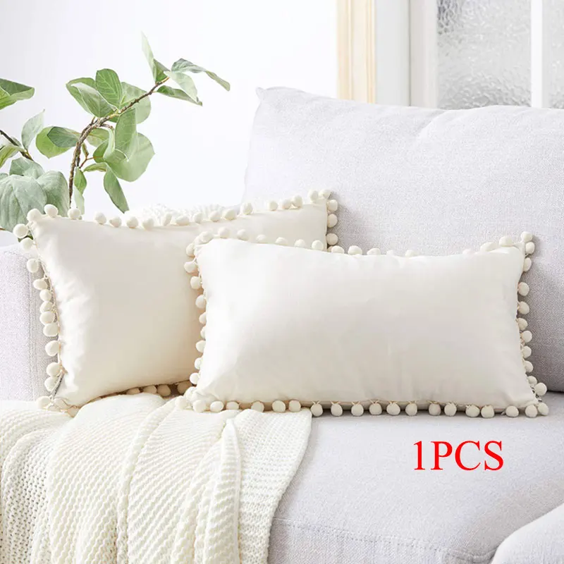 Мягкая бархатная наволочка с помпоном, белая, желтая, синяя наволоч...