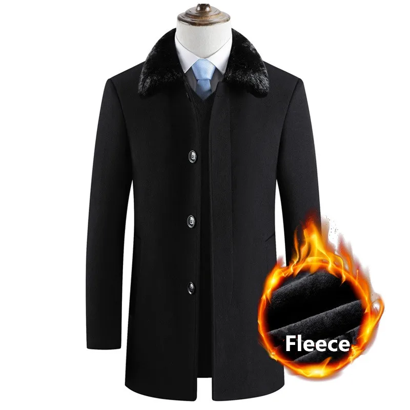 Зимнее теплое шерстяное пальто, Мужская ветровка, куртки, повседневные, тонкий меховой воротник, пальто, шерстяное пальто, мужское длинное полупальто, Тренч, куртка