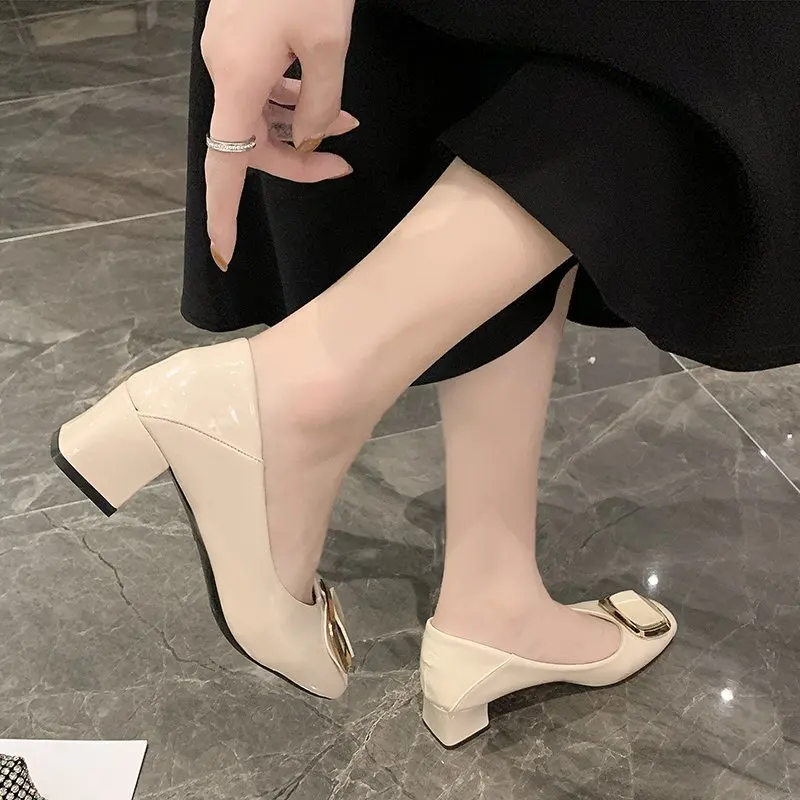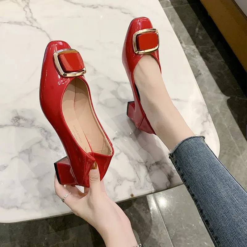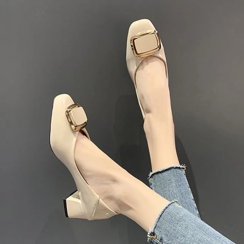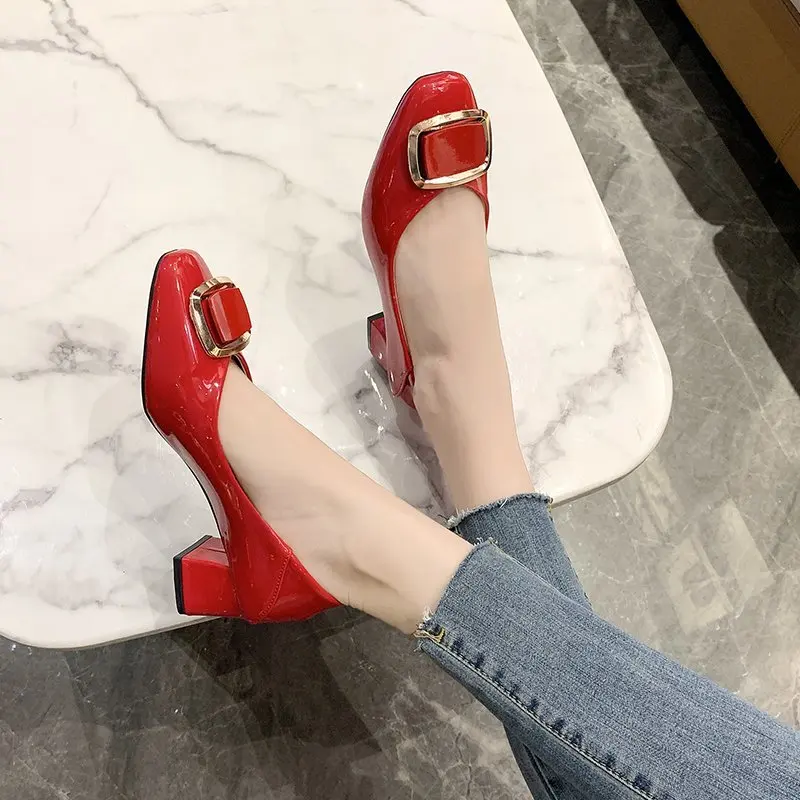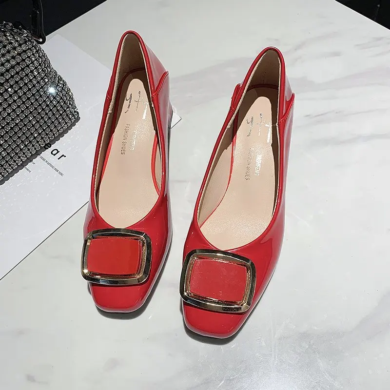 Офисная Женская обувь женские туфли-лодочки из лакированной кожи на среднем каблуке Тонкие Туфли модельные туфли на массивном каблуке Большие размеры 8355C