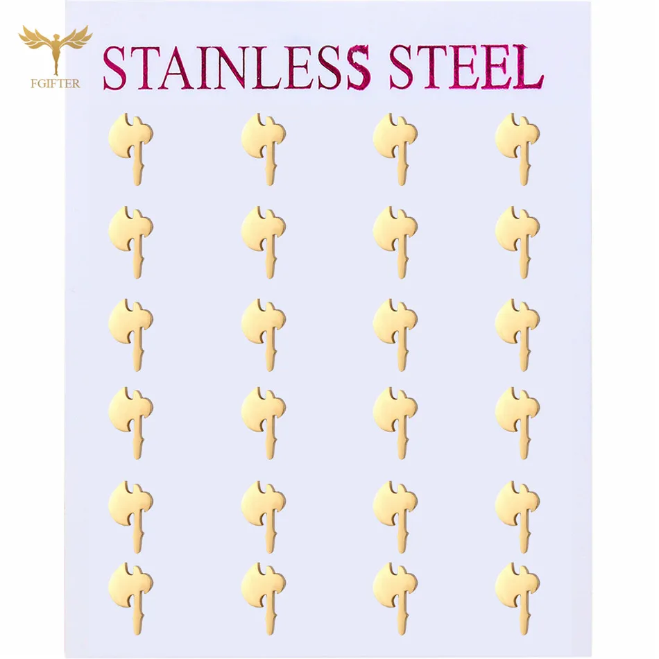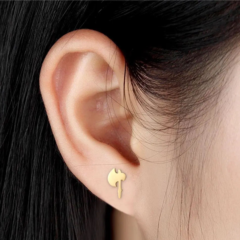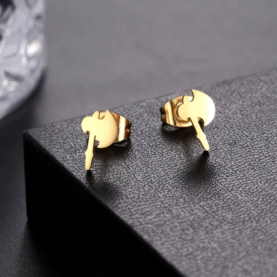 Новинка 2022 года, комплект ювелирных изделий, серьги в стиле панк, топор, серьги викингов, серьги-гвоздики золотого цвета из нержавеющей стали для девочек, женщин и мальчиков, оптовая продажа