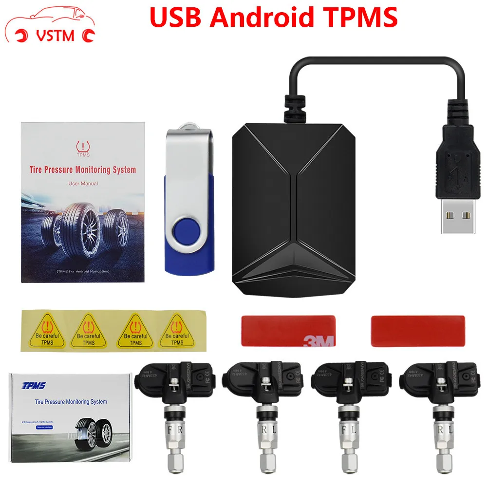 -TPMS для Android навигации: Приемник может подключаться к автомобильному DVD/мультимедийному плееру/gps-навигатору, устанавливать приложение (входит в u-диск) и проверять данные шин на экране, очень удобно использовать