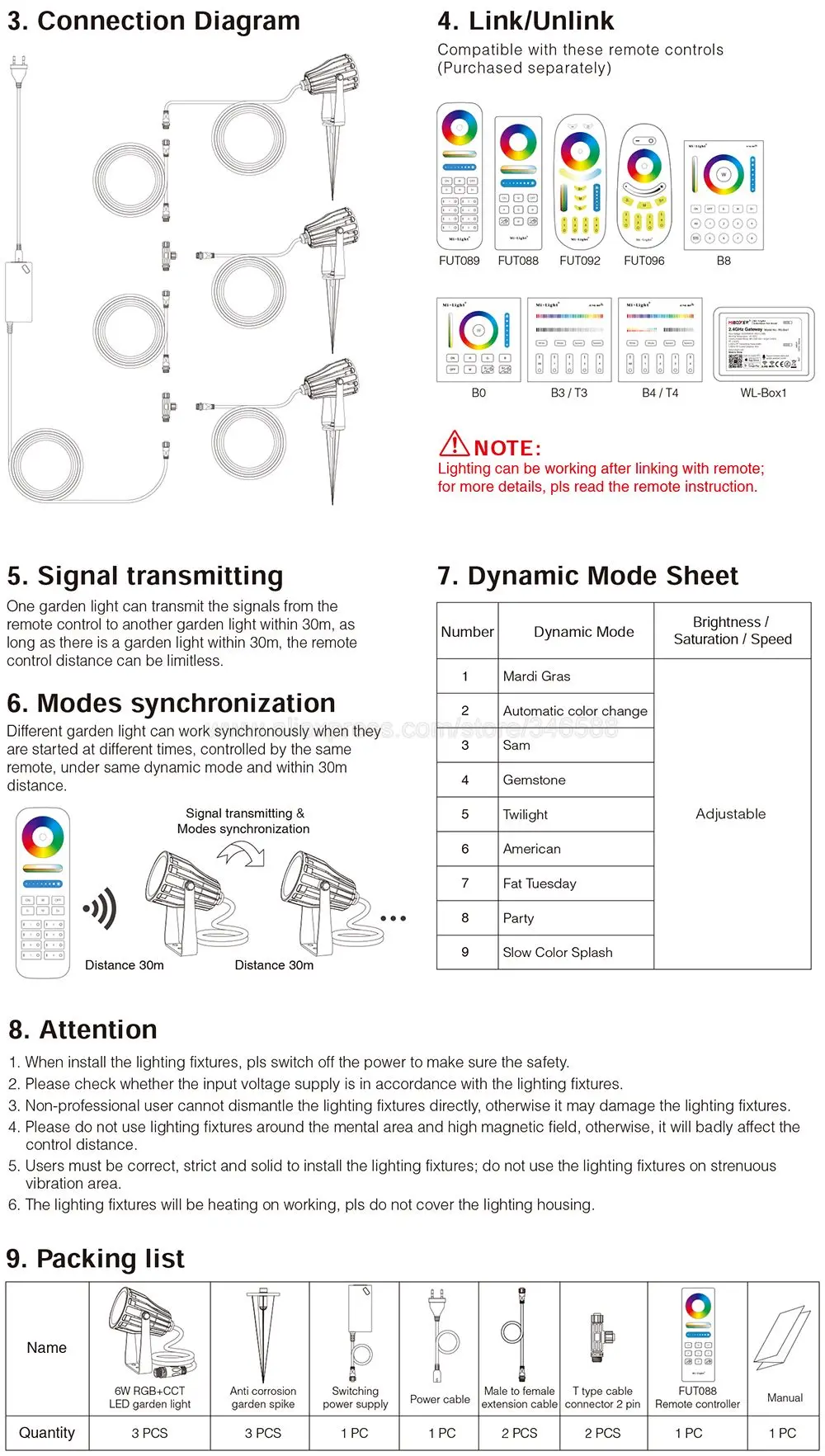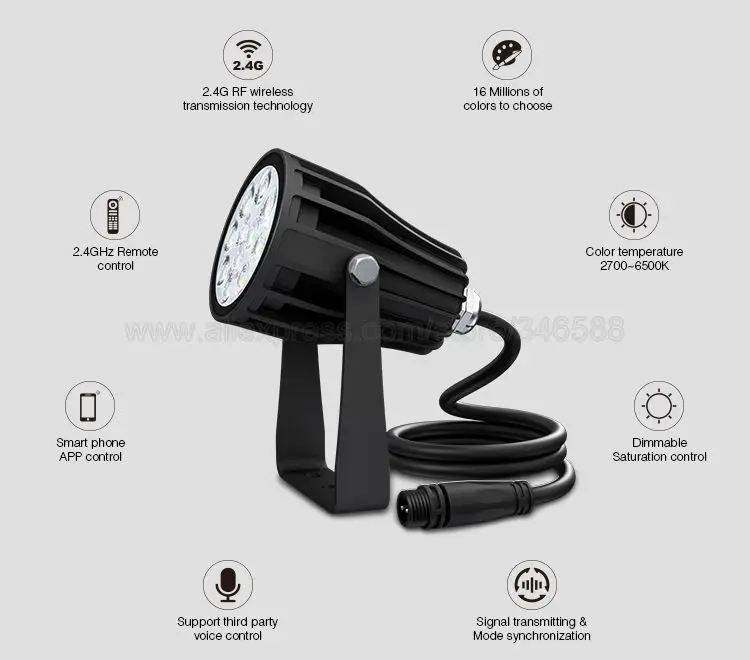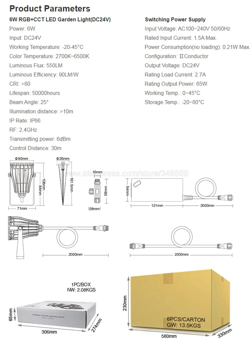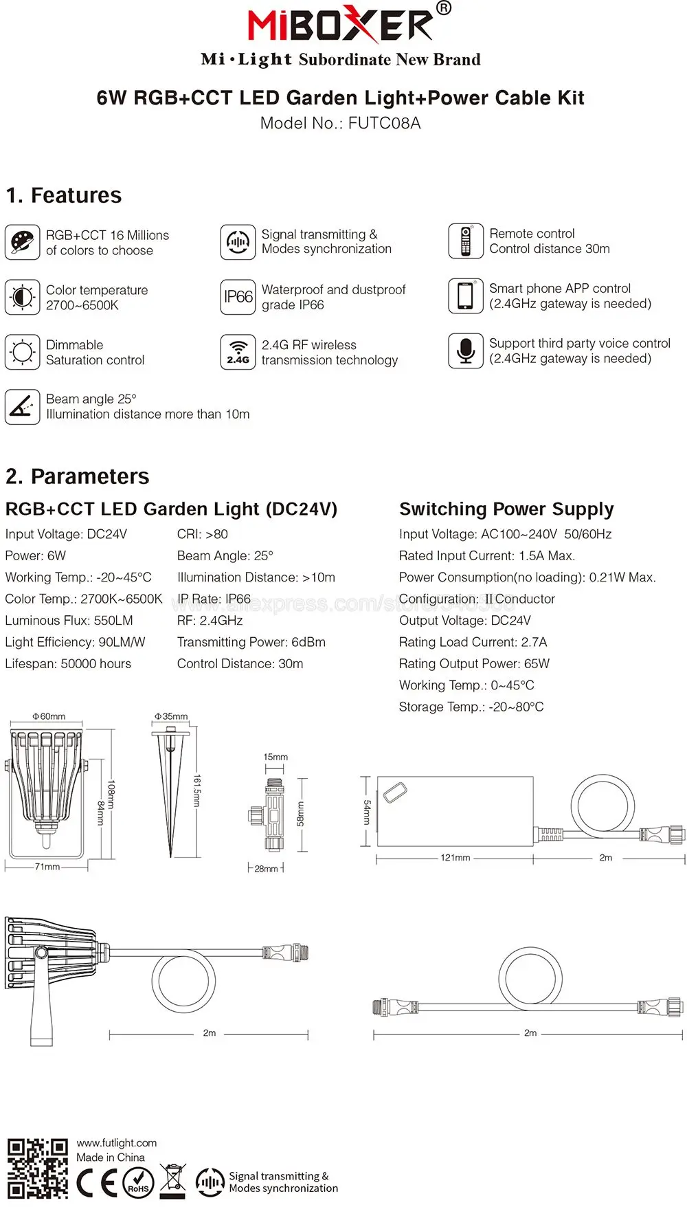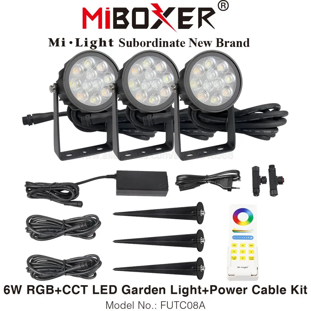 MiBoxer FUTC08A 6 Вт RGB + CCT светодиодный светильник для сада, источник питания 24 В постоянного тока, 65 Вт, кабель, разъем, FUT088, комплект беспроводного пульта дистанционного управления 2,4G