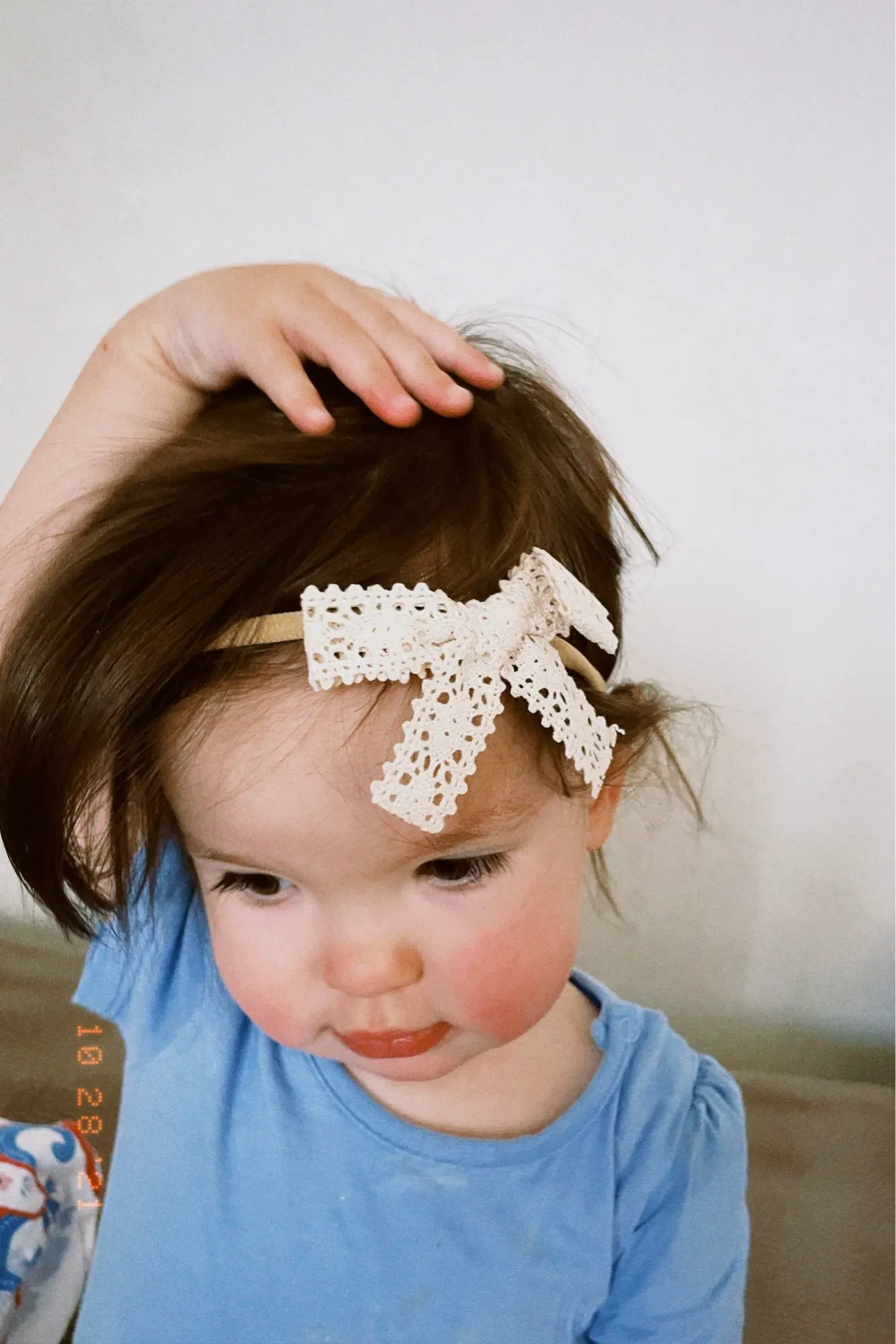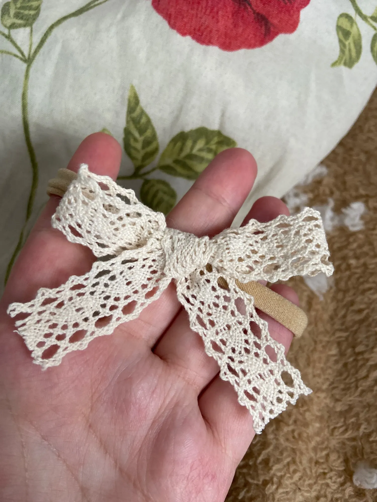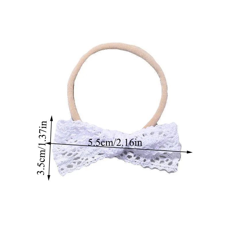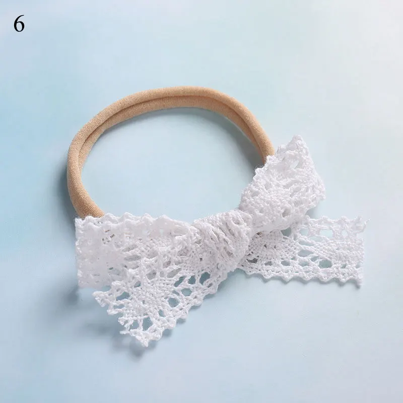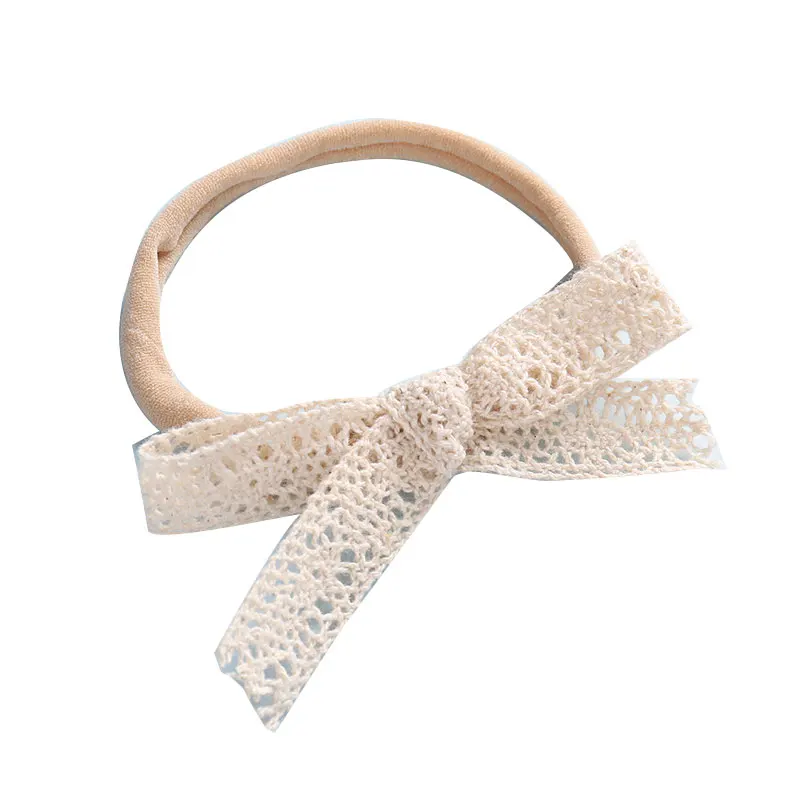 Детская повязка на голову с бантом; Цвет белый, бежевый; Повязка на голову с кружевом и бантом для девочек; Детские тонкие нейлоновые аксессуары для волос; Мягкая Эластичная головная повязка