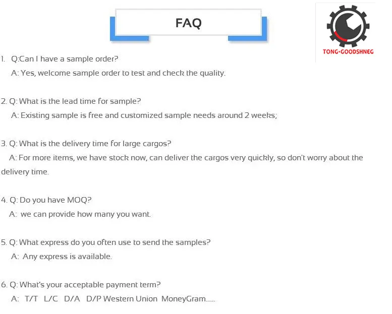 О TONG GOODSHNEG TONG GOODSHNEG стремится предоставить клиентам высококачественные инструменты. Улучшение качества продукции-наша главная задача. Наша цель-создать онлайн профессиональный бренд, который преследует качество. У нас есть профессиональная производственная команда и команда обслуживания, чтобы обеспечить вам качественную продукцию в то же время, чтобы обеспечить удовлетворительное обслуживание. Добро пожаловать в семью TONG GOODSHNEG!