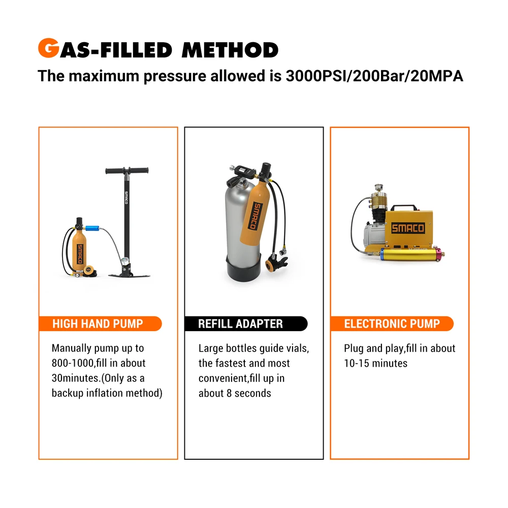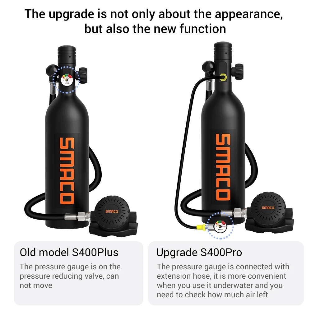 Мини-резервуар для подводного плавания SMACO S400Pro, комплект оборудования для кислородный мини-цилиндр, респиратор, ручной насос, 1 л, кислородный баллон для дайвинга