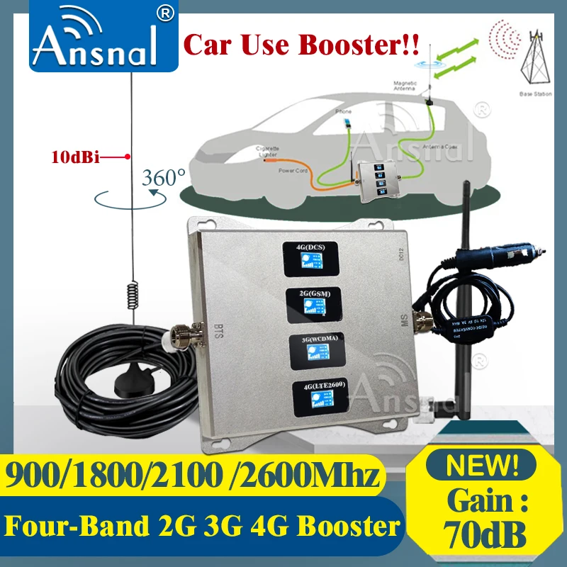 Использование в машине! Четырехдиапазонный усилитель сотовой связи 900180021002600 МГц, ретранслятор GSM 2g 3g 4g, усилитель сигнала мобильного телефона GSM DCS WCDMA LTE
