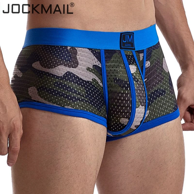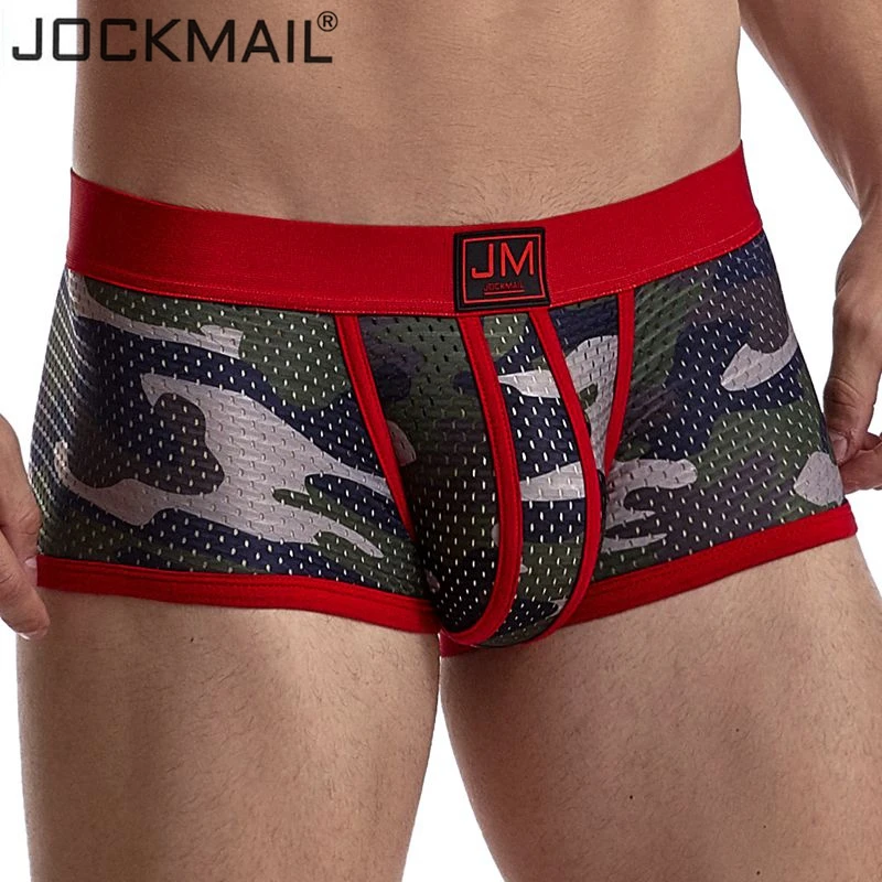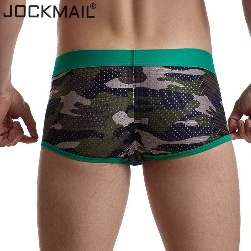 JOCKMAIL, боксеры, мужское нижнее белье, мужское камуфляжное Сетчатое нижнее белье, боксеры, Мужские дышащие Гей сексуальные трусы, calzoncillos hombre