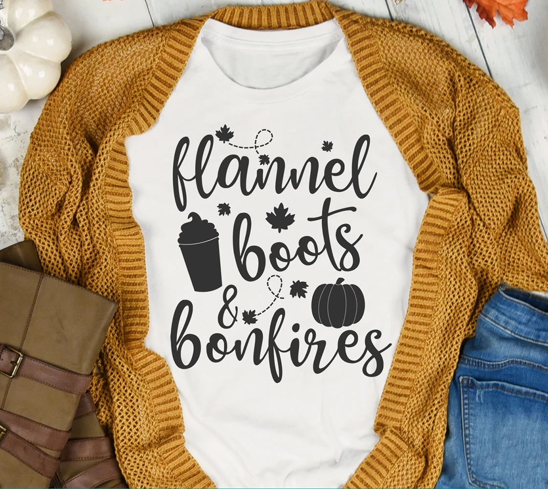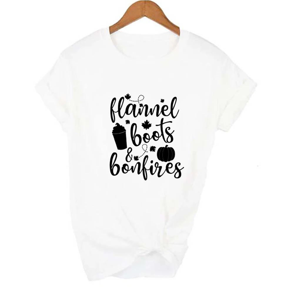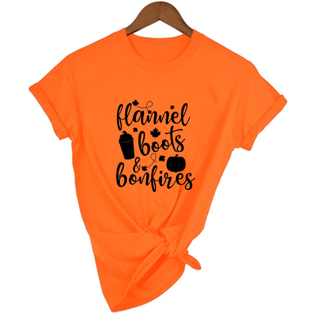 Фланелевые сапоги и костер футболка Милая Тыква специи Графический футболки с символикой Хэллоуина Топы забавные осенние женские День благодарения праздничный подарок