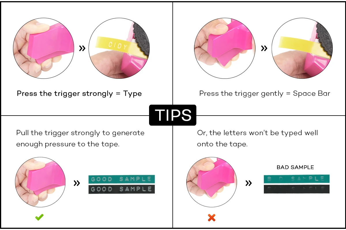 Заправки ленты не удобны в установке. Они плохо держатся, и я не нашел для прикосновения пространства. Они должны быть уверены в выборе букв, чтобы все прошло хорошо.