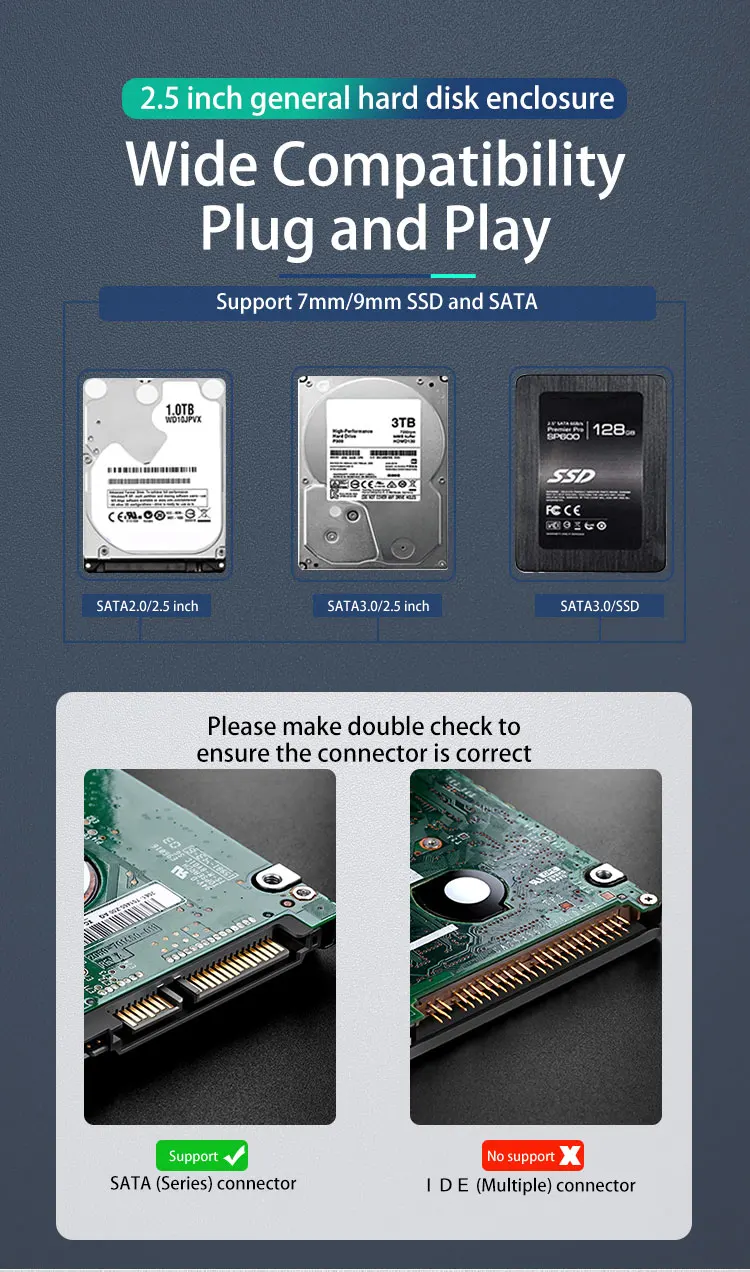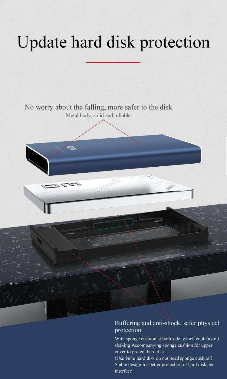 Для снижения транспортных расходов мы используем легкую упаковку пены, которая является безопасной и стабильной. Все продукты совершенно новые и неиспользованные, пожалуйста, будьте уверены. Название бренда: DMВнутренний интерфейс: SATA 3,0, 6 Гбит/сВнешний интерфейс: Type C 3,1 Gen2, 6GPBSПоддержка емкости жесткого диска: 4 ТБСовместимость дисков: 2,5 "SATA 3,0 HDD или SSD (толщина 9,5 мм или меньше, чем он)Материал корпуса: алюминиевый сплавПреимущество: интерфейс типа C/без инструмента/Горячая вилка/Plug and play/без драйвераСовместимость ОС: Windows 2000/XP/Vista/Win7/Win10,MAC9.0/10,2 и вышеЦвет: серый HD001:Micro B HD002:Type-C HD003:Micro B