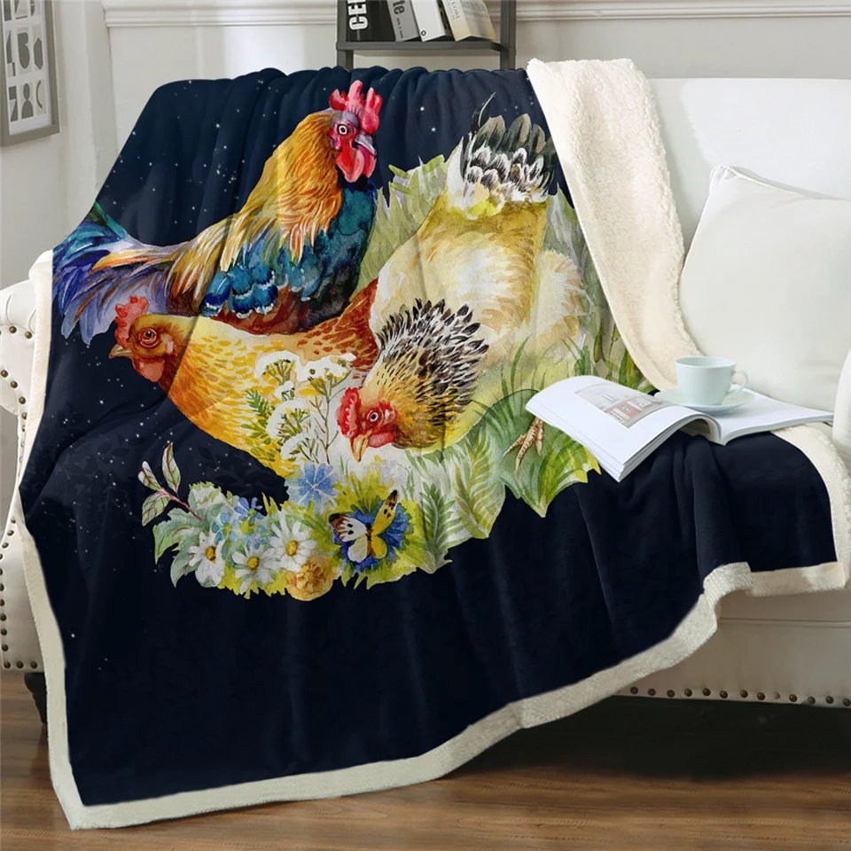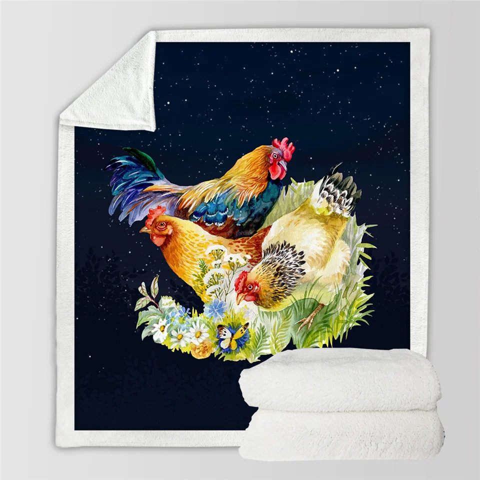 2020, Флисовое одеяло с курицей, шерпа, акварельное мягкое пушистое одеяло с петухом, модное одеяло с животными и цветами
