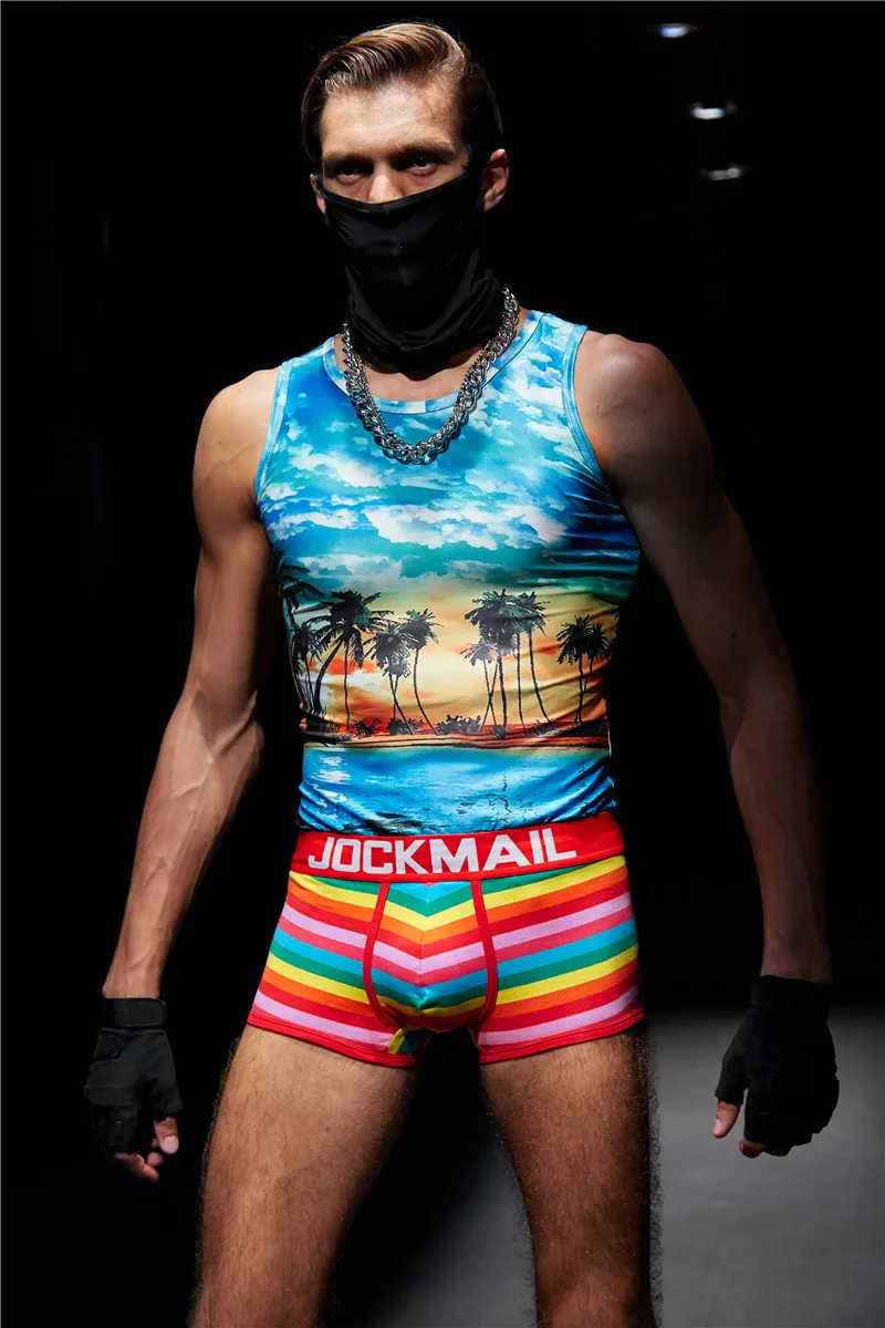 Мужские трусы-боксеры Jockmail, модные шорты в радужную полоску с н...