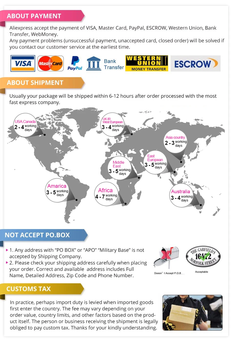 Shipping TimeShipped within 24 Hours, Received within 2-5 working days