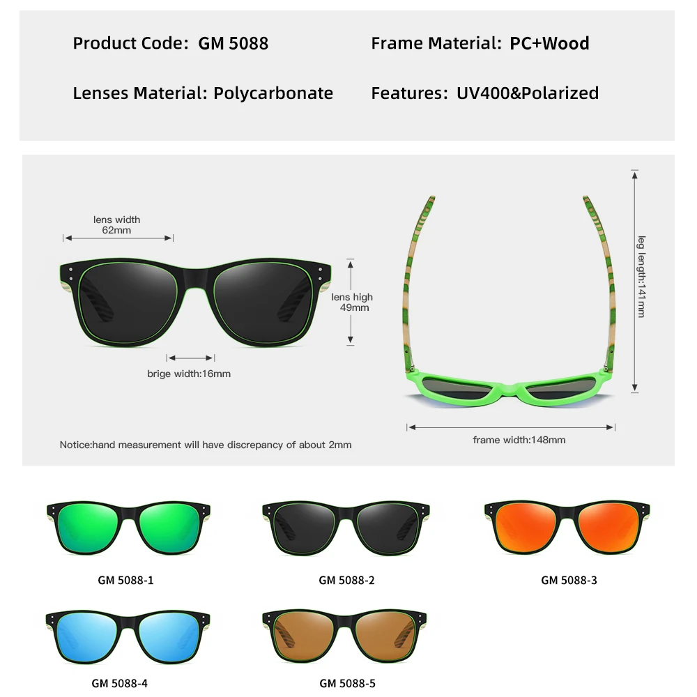 Деревянные бамбуковые солнцезащитные очки GM для скейтборда поляриз...