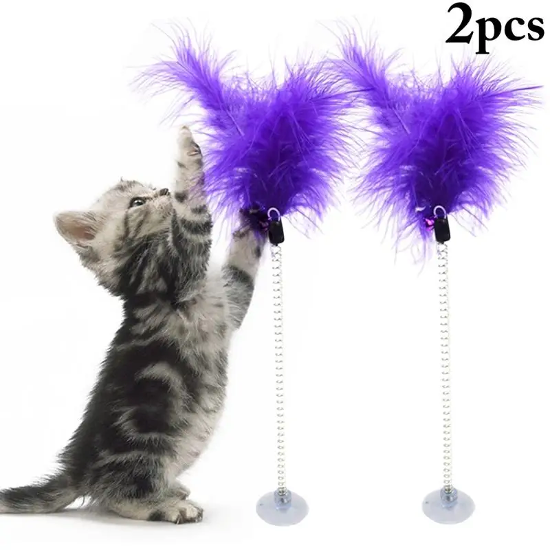 Legendog 2 шт.компл. Кот Прорезыватель палочка искусственная мышки с перьями форма колокол Декор Весна присоска кошачья палочка игрушка товары для домашних животных случайный цвет