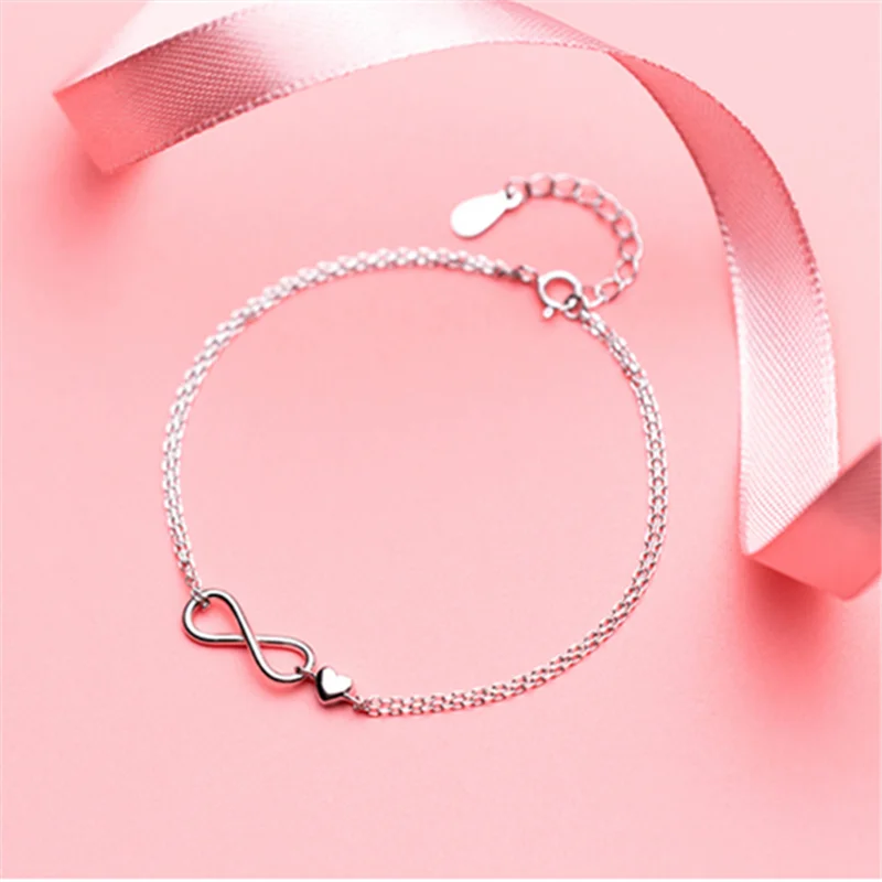 925 стерлингового серебра Бесконечная любовь сердце Шарм браслет-цепочка для женщин вечерние годовщина свадьбы, ювелирное изделие, подарок