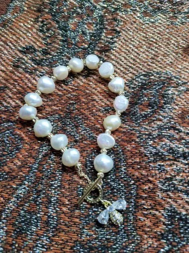 браслетик очень нежный жемчуг настоящий пчелка в цыркончиках прислали быстро продавца рекомендую успехов
