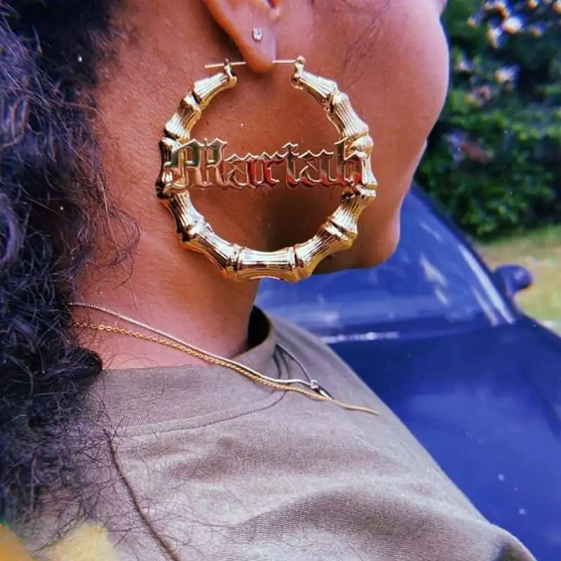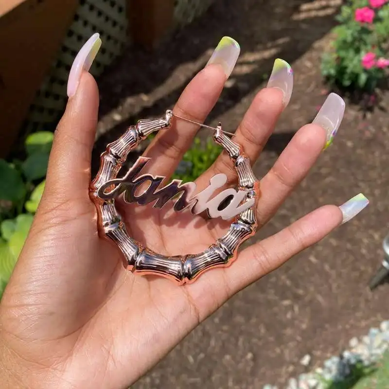 Индивидуальные женские серьги с индивидуальным именем, в виде бамбука, сексуальные женские ювелирные изделия, подарочные серьги для женщин