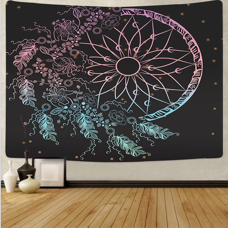 Недорогой Ловец снов психоделический гобелен перо настенный художественные гобелены настенный тканевый фон ковер коврик для йоги домашний декор