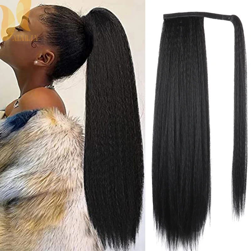 XINRAN синтетический удлинитель для конского хвоста Yaki для женщин охватывающий курчавый прямой хвост клипса в магической пасте шиньон 24 дюйма