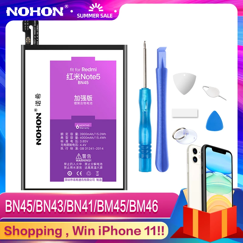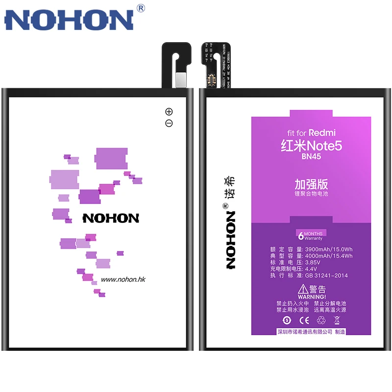 Аккумулятор NOHON для Xiaomi Redmi Note 5 4 4X 3 2, сменная батарея BN45 BN43 BN41 BM46 BM45, оригинальные литий-полимерные аккумуляторы