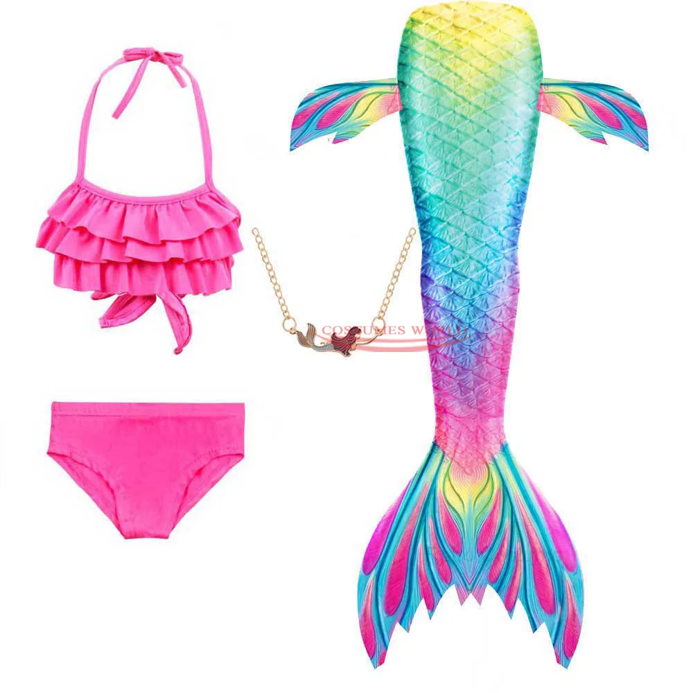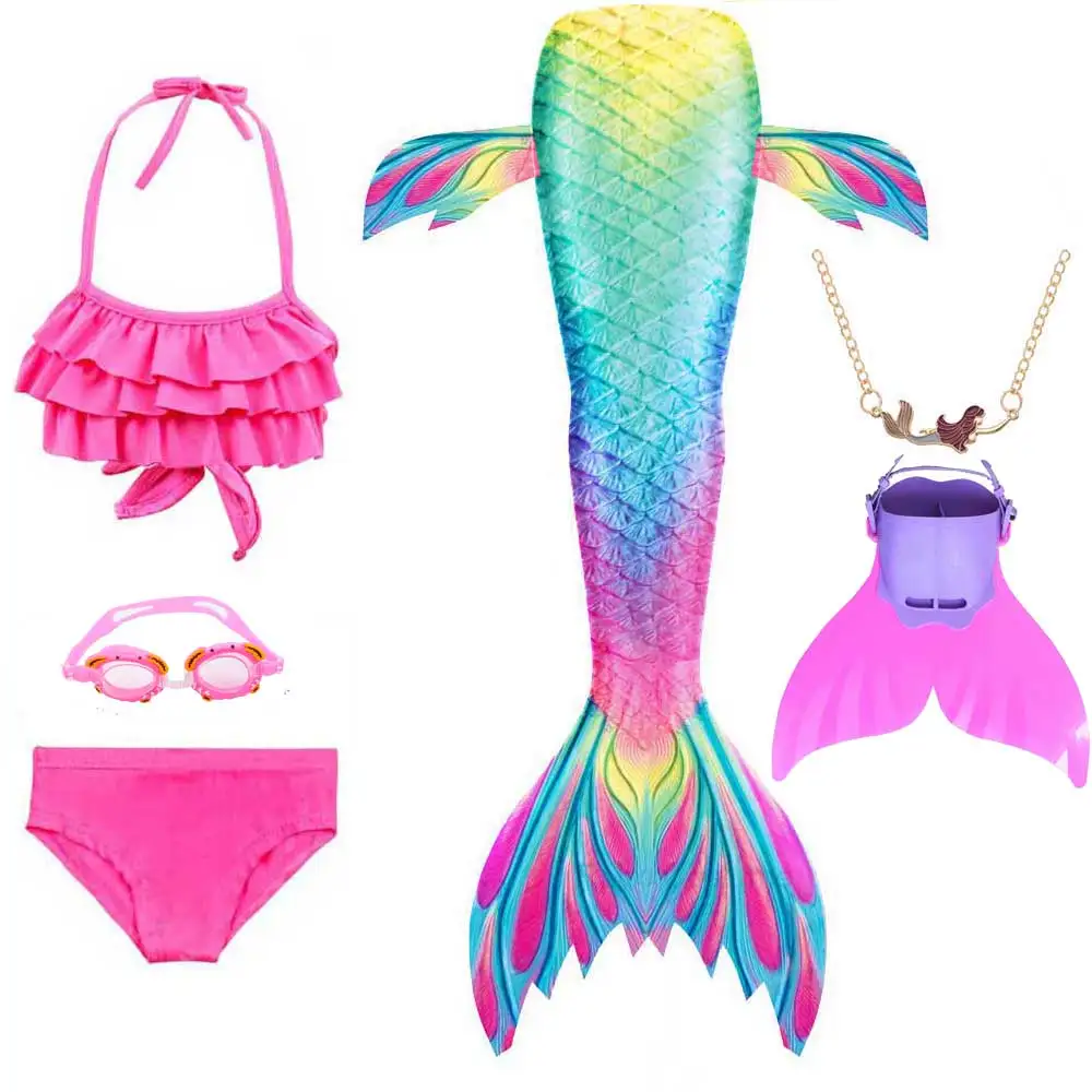 Новинка 2020 года; Маскарадный костюм русалки Ариэль для маленьких детей; Нарядный Купальник для девочек; Вечерние костюмы; Одежда для плавания с хвостом русалки; Очки с ожерельем