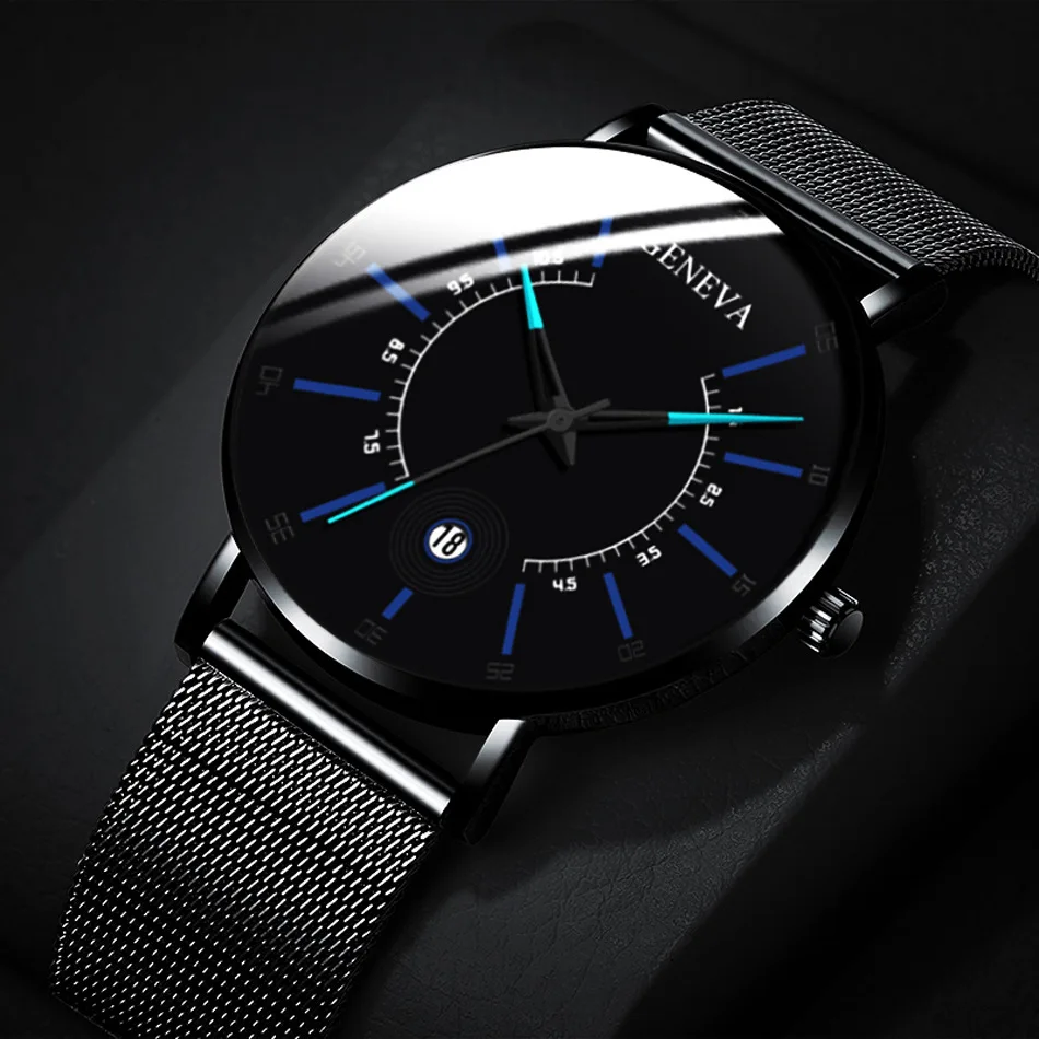 Мужские кварцевые часы с сетчатым браслетом, ультратонкие элегантные деловые часы из нержавеющей стали, 2021