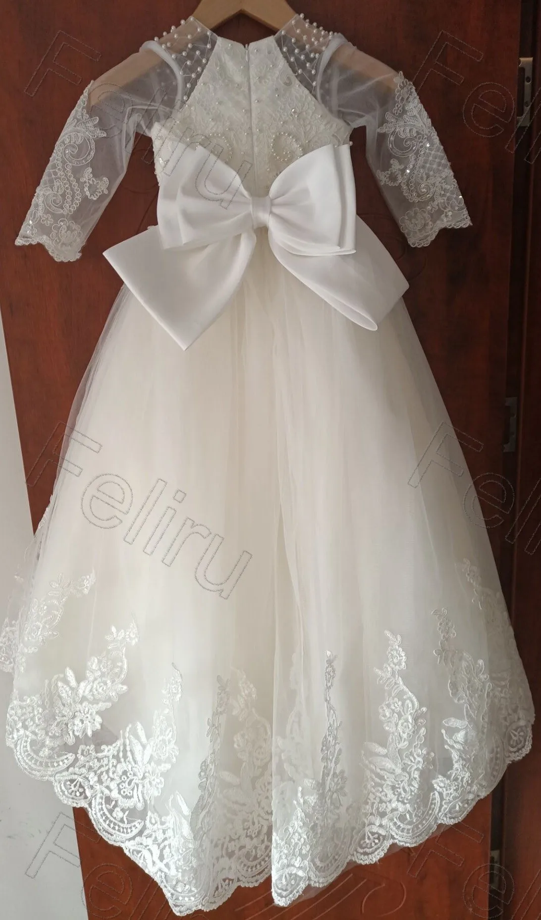 Платья для девочек с кружевными цветами, Primera Comunion, свадебное платье для маленькой невесты, детское бальное платье с длинным рукавом, пышное платье для девочек